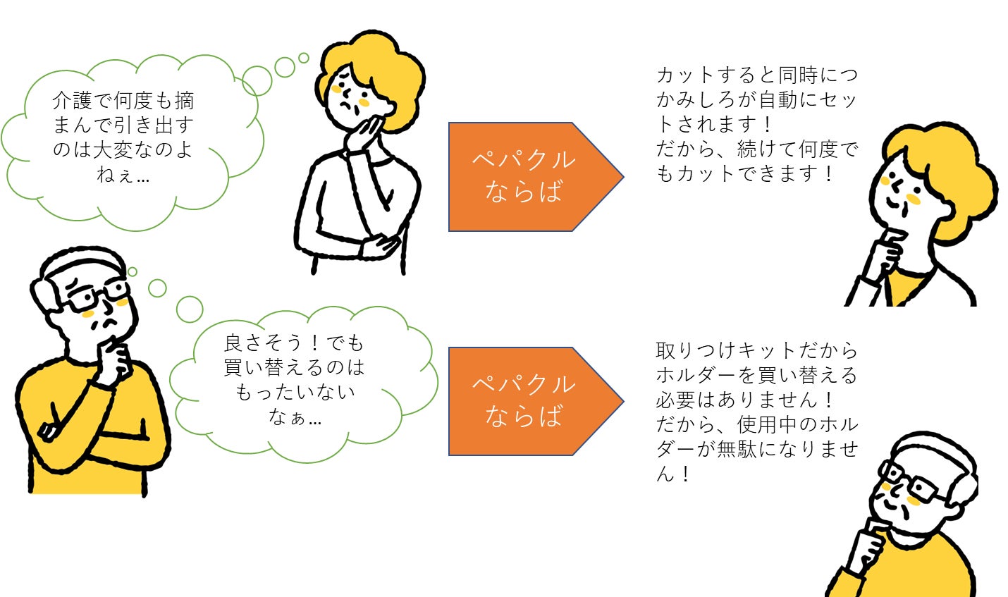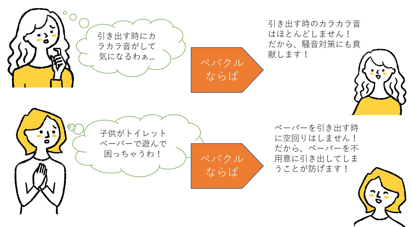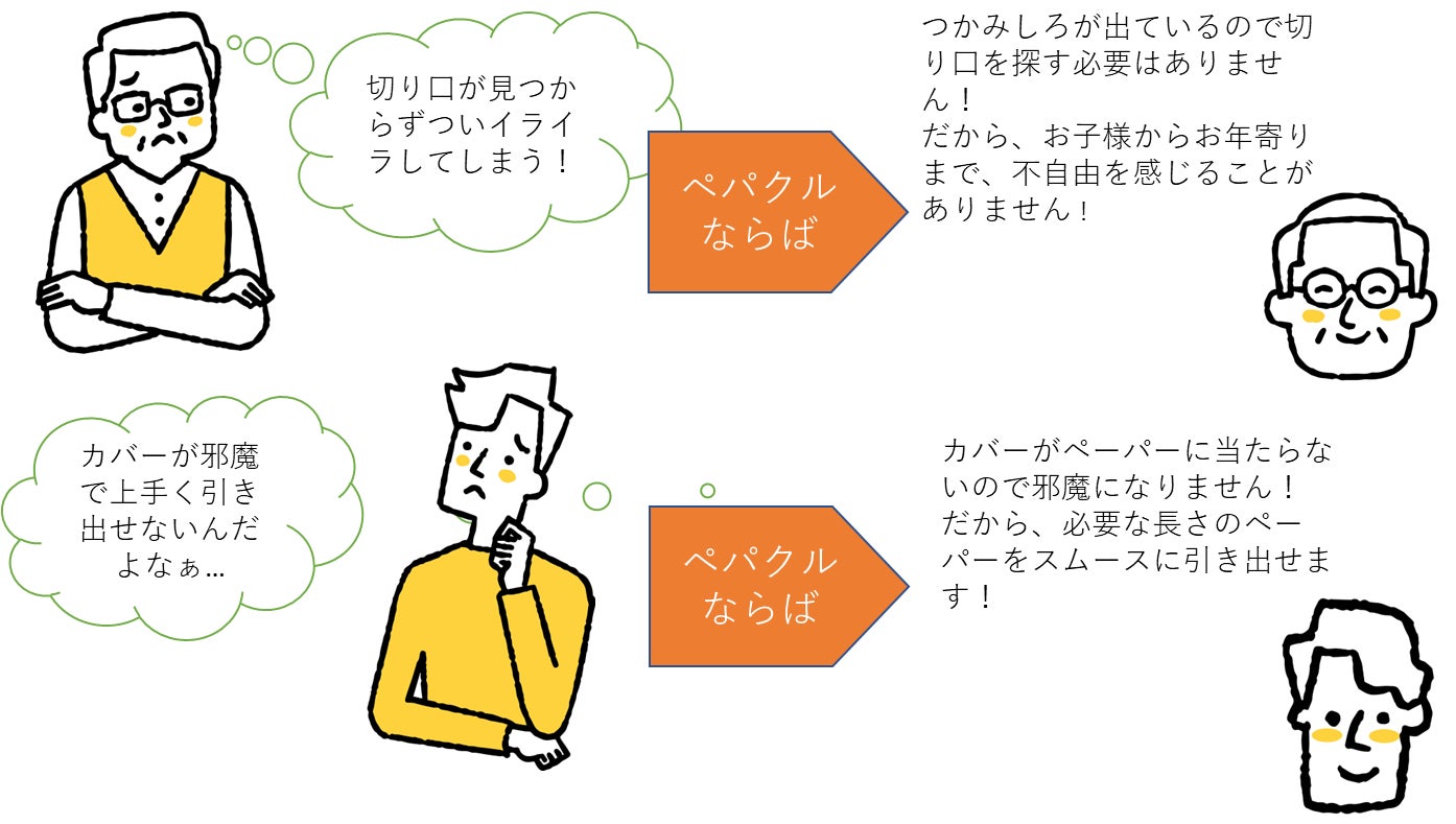 ペパクルを使え ば、簡単にペー パーをつかんで引き出すことができ、ストレスなく快適にトイレを使う事が出来ます。