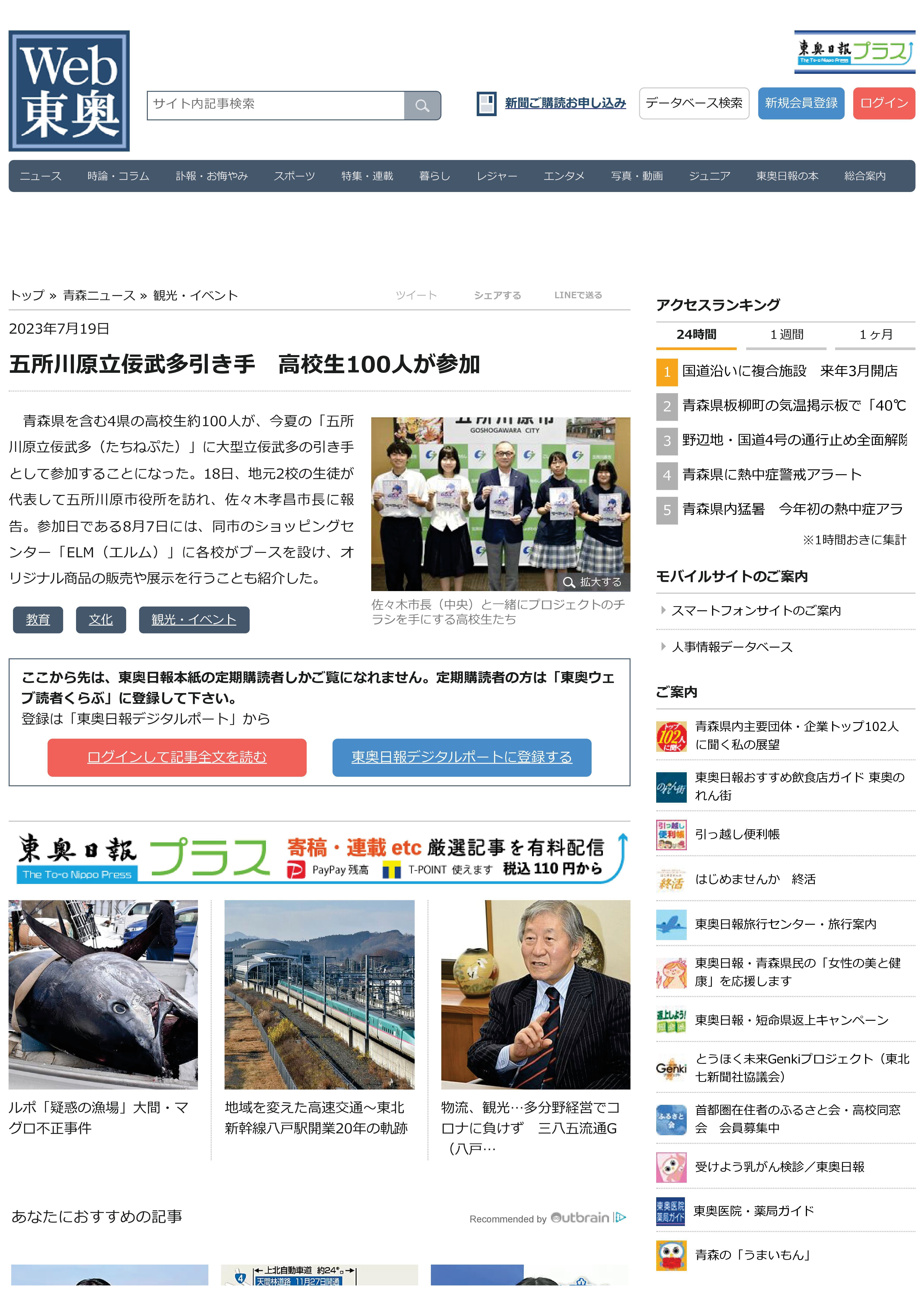 2023/07/30 15:057月18日(火)に五所川原第一高校、五所川原商業の生徒の皆さんとともに五所川原市長様、副市長様への表敬訪問を行いました!両校の生徒より、これまでの活動報告と当日の動き、このクラウドファンディングについてもご説明させていただきました。当日は五所川原市長様にご来場いただく予定です! もっと見る