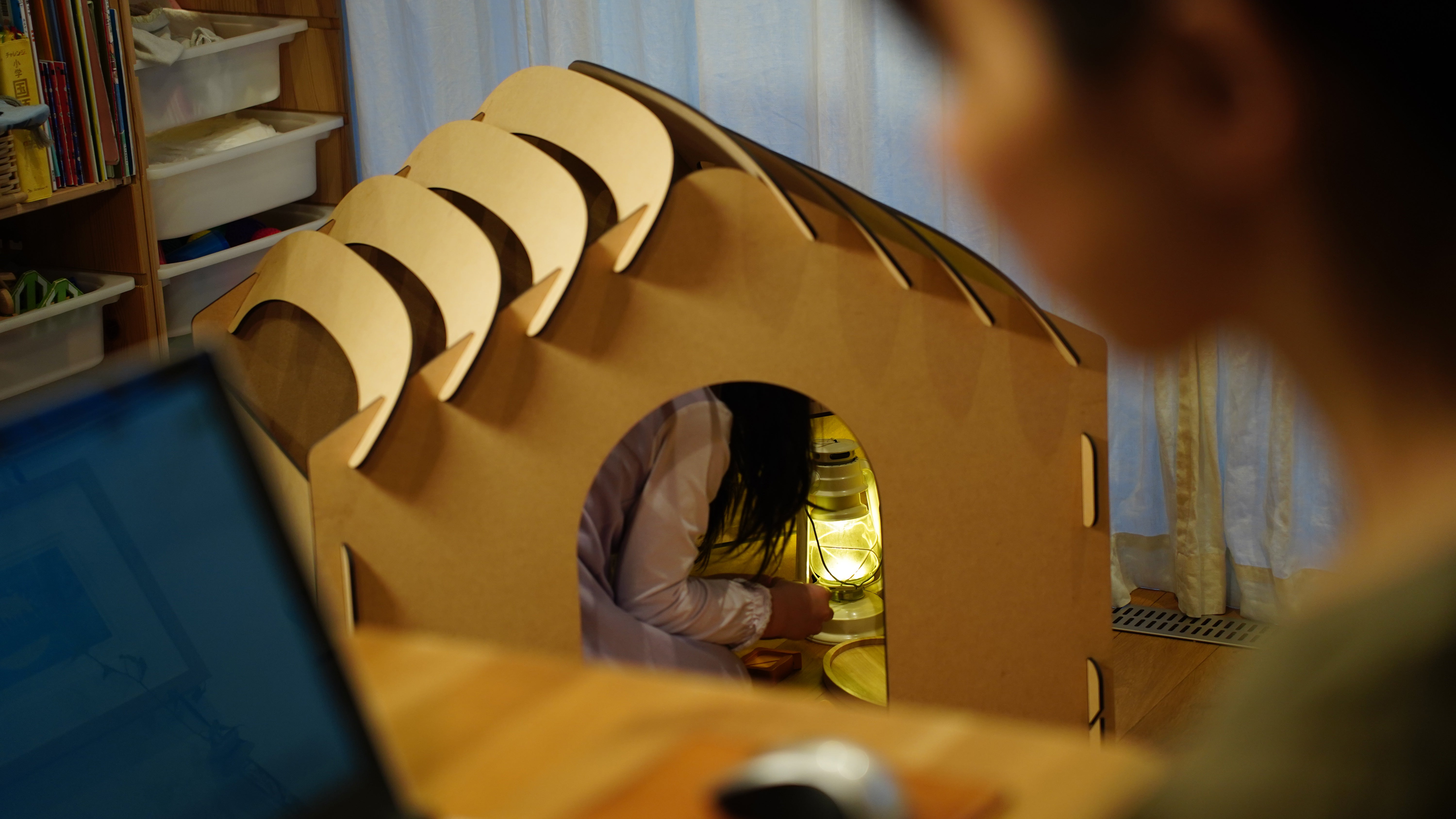 2023/12/16 13:45【活動報告vol.3】12/3(日) 京to大津イベント 展示出店共催イベント、京to大津〜ツーリズムでつなぐ地域とライフスタイル〜でmimamori BASEを展示出店させていただきました。このイベントは、京都と大津で活動する3人の共催イベントで、人と地域との繋がるきっかけを作ることをコンセプトに開催しました。お子様連れの参加者も多く、大人が集中して対話をしていただくための展示出店です。まずは、入り込みます笑入り込む子と外から覗き込んだりする子も。1人でまったりする時間もいいですよね。さすが今の子。mimamori BASE補強に必要だった場所も棚として扱いスマホで動画を見ている子もいました。外出の様子笑たくさんの子ども達が入り込んで遊んでくれました。そのおかげで、参加したママたちは、有意義な対話の時間を過ごせました。ありがとうございました。 もっと見る