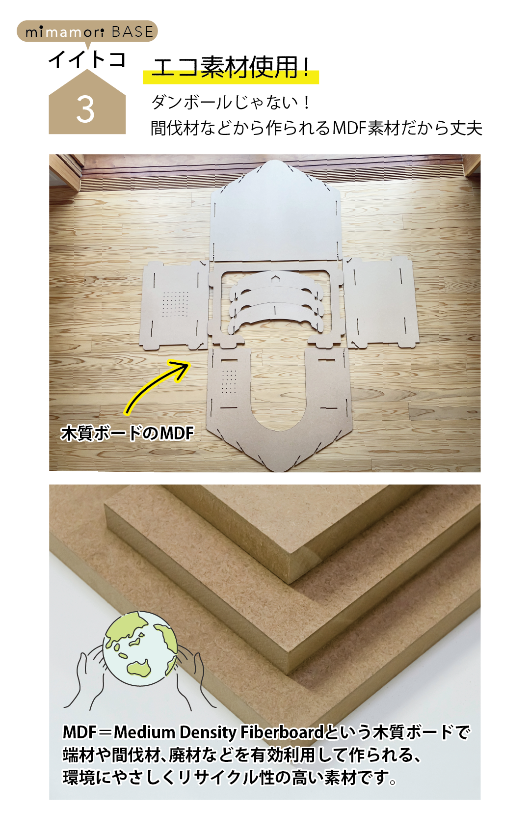イイトコ3【ダンボールより丈夫なMDF使用で、長く使えるから環境にも優しい】