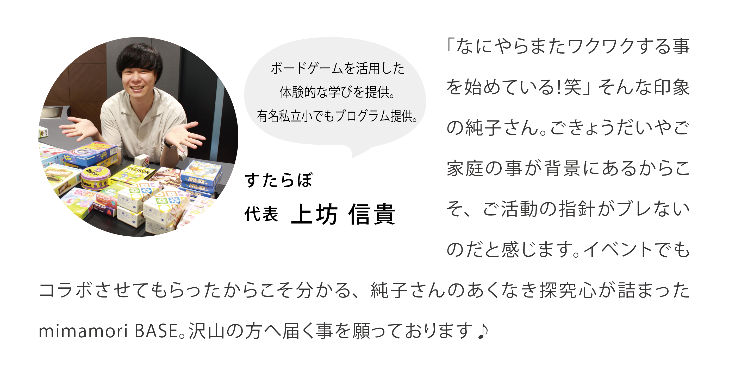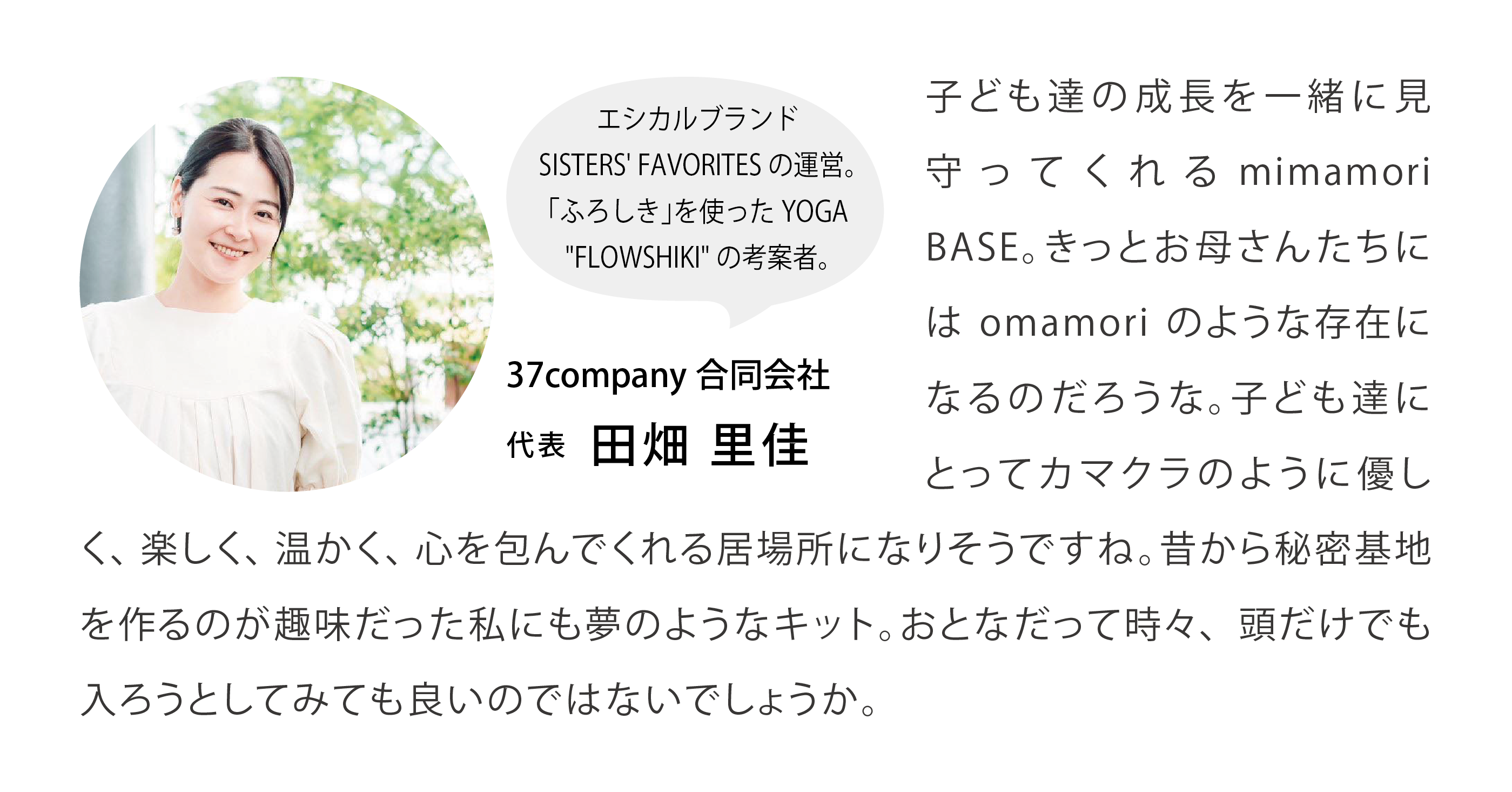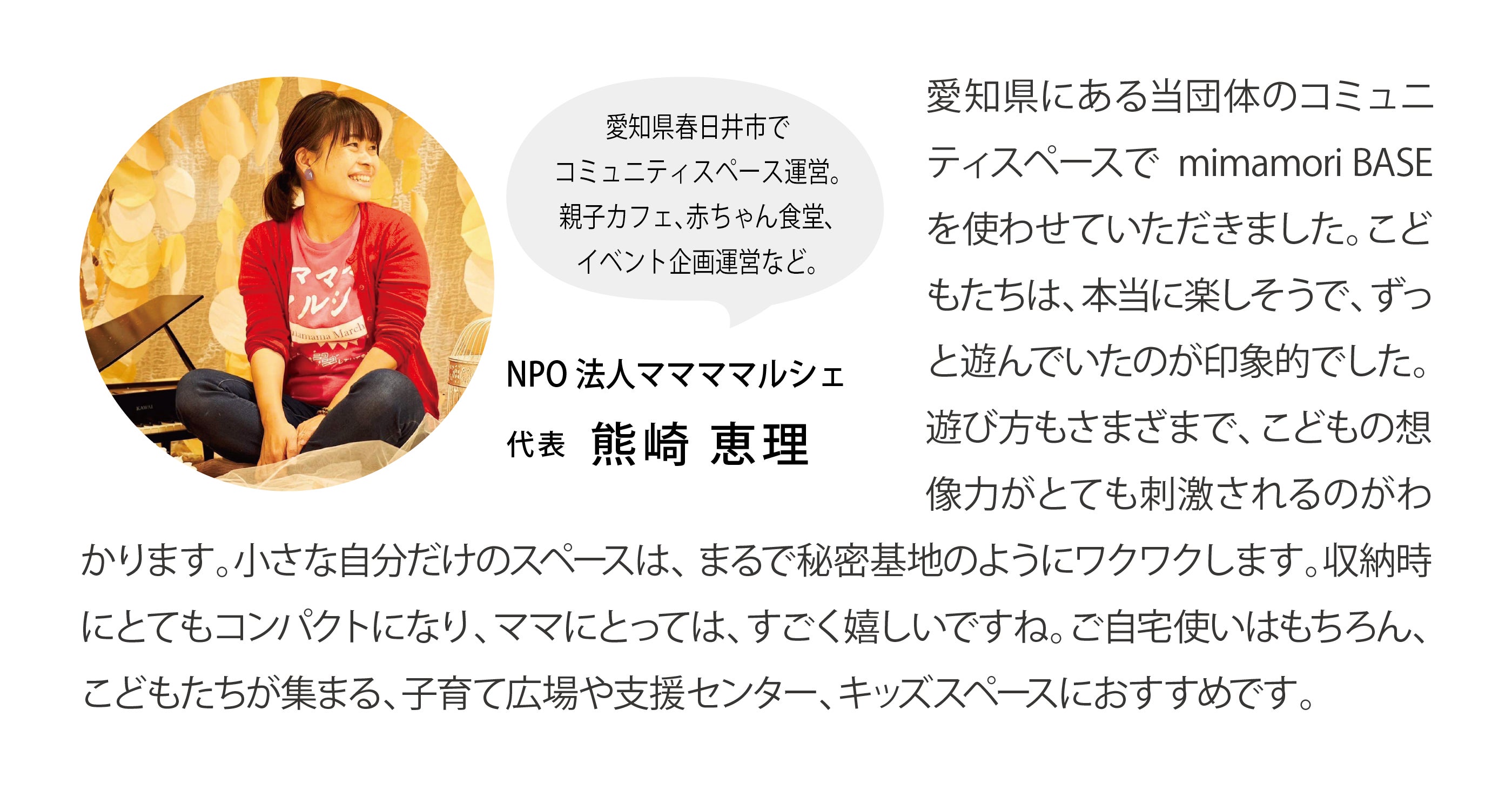mimamori BASEが、親にとっては自分の時間をつくる(楽しむ)手助けになり、子どもの創造力を育むきっかけになることを願っています。