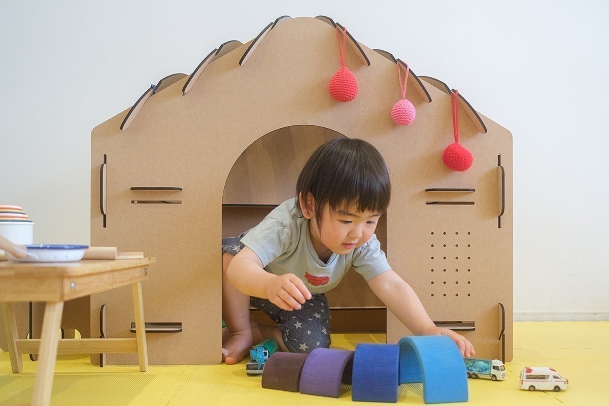 こだわりの点は、なんといっても2wayで長く使えるアイテムなので、コスパがよいというところです。子どもに1人遊びを楽しんでほしい(その間にママの1人時間を確保する作戦も笑)から、おうちの形の秘密基地でごっこ遊びや集中した遊びをしてくれたり、机にすると制作やお勉強もしてもらえます。広々とした上面を使っておもいっきり遊びも学びも集中してくれて、親子それぞれがうれしい時間を過ごせることを願って設計しました。