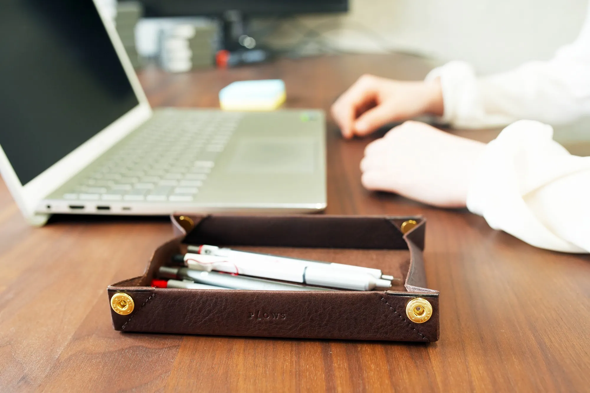 ペントレイで机の上が散らからない。いつものペンはいつものトレイで。