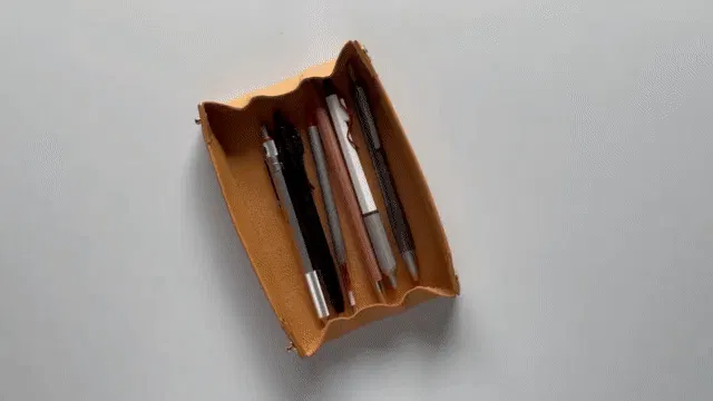 折り紙のように革を畳んで立体にする事でペントレイの形のまま丸め込む事が可能になりました。