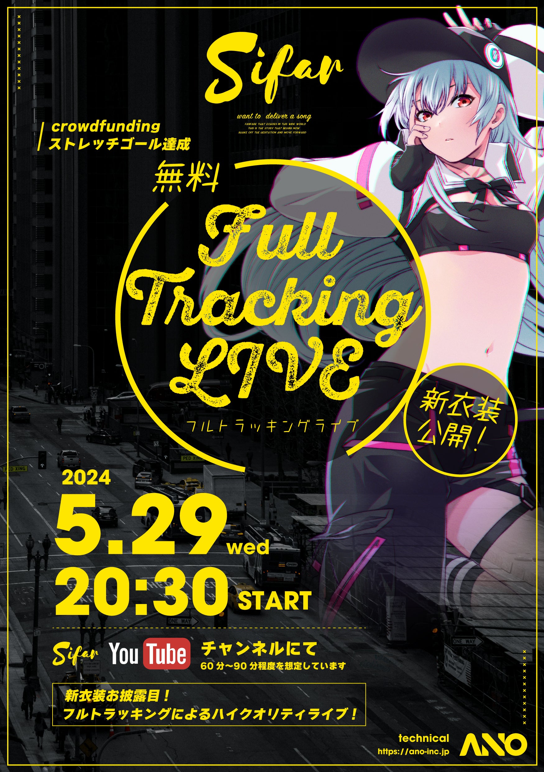 もろもろの準備で大変遅くなってしまいましたが、ネクストゴールとしてフルトラッキングによりハイクオリティな無料オンラインライブをSifarのYouTubeチャンネルにて実施させていただきます。