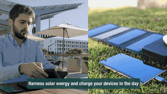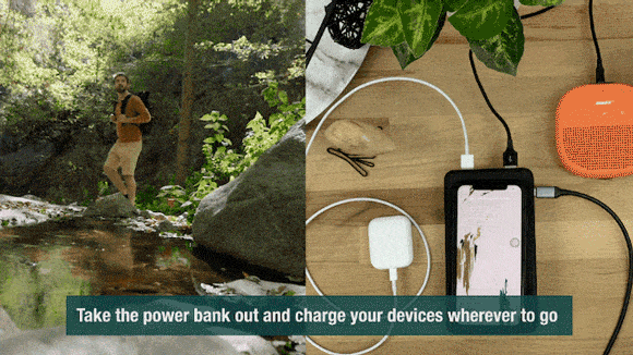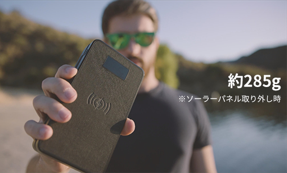 一般的なモバイルバッテリーとは異なり、ES B02は取り外し可能なデザインを採用しています。モバイルバッテリーはソーラーパネルから分離されるとわずか285gの重量とコンパクトサイズで、持ち運びがしやすくなっています。