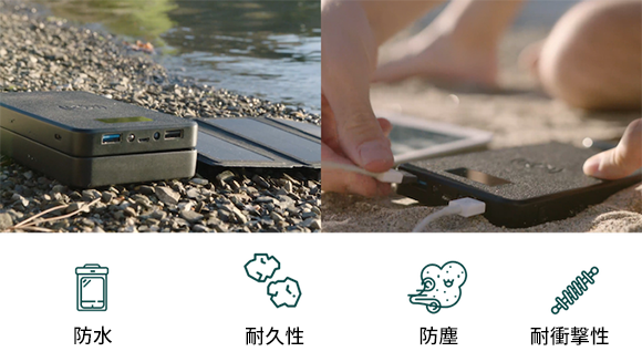 ⑥ 防水・防塵設計で、普段使いから災害時、アウトドアまで活躍!