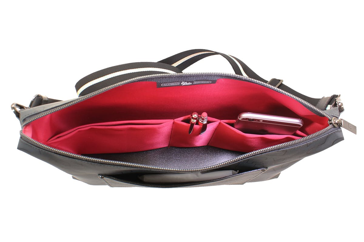 シンプルでスマートで機能的なバッグ。ファスナーを開けるとパッとバッグの中が一目瞭然、上から一目でどこに何があるかすぐに分かります。たくさんのポケットや隠しポケットで機能性を謳っているタイプのバッグではなく、実際に使用してみるとこのシンプルな構造の使いやすさがご理解いただけます。
