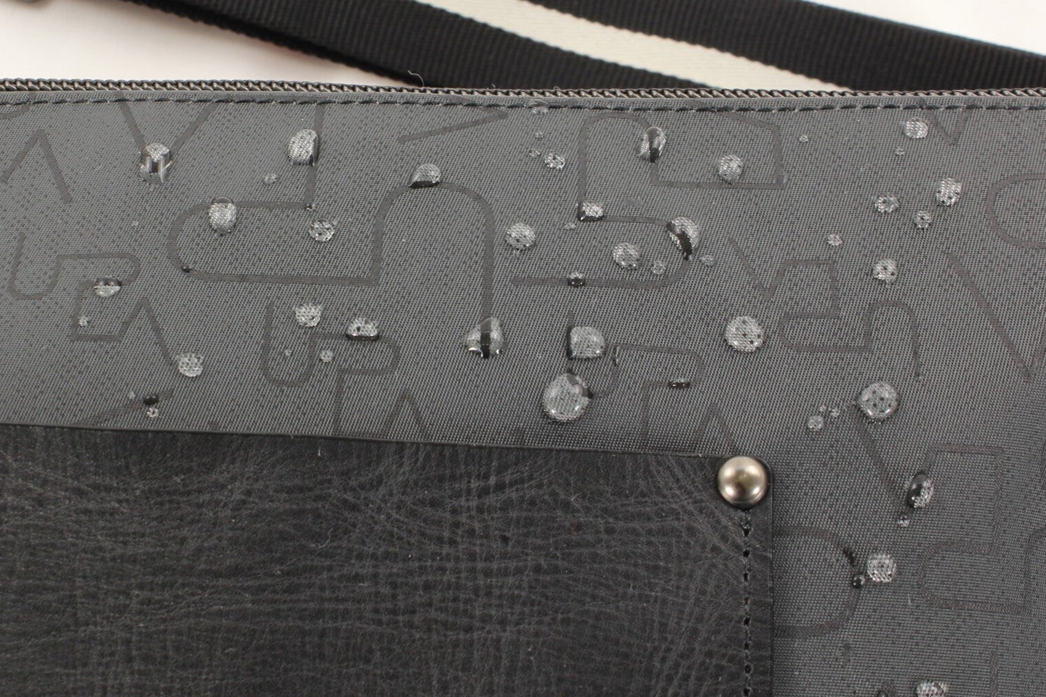 WTWPナイロンは、このようにダブルのツイル生地とダブルのプリントによって、軽くて丈夫でバッグの素材として理想的なコシの強さを実現しています。撥水性が高いだけでなく、実質的に完全な防水素材です。その防水性は工業試験場によって通常の傘の7倍もの耐水力があることが証明されています。さらに皺になりにくく、汚れが目立ちにくい性能を持っています。