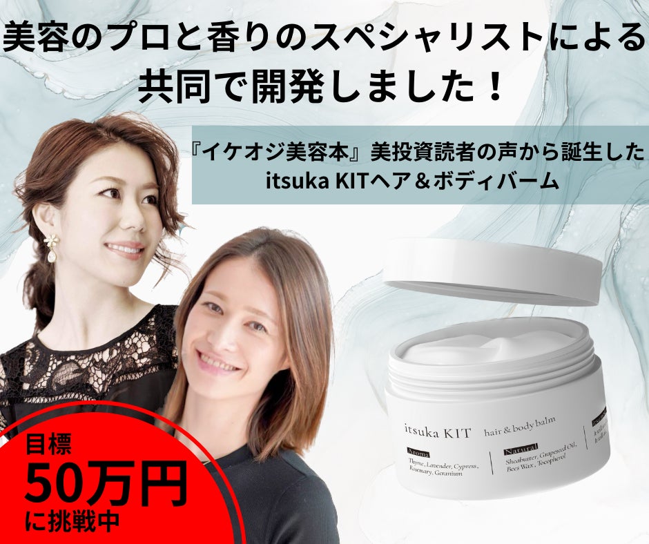 2023/12/18 13:00皆さま、こんにちは。itsuka KIT DESIGNの舩木いつかです。前回のクラウドファンディングでのあたたかなご支援に改めて深く感謝いたします。今回、私たちはイケオジ美容本「美投資」の読者様からの多くのご意見を元に、香りのスペシャリスト箕輪三香さんとタッグを組み、「itsuka KIT ヘア&ボディバーム」を開発いたしました!この「itsuka KIT ヘア&ボディバーム」は、今月からクラウドファンディングにて先行販売を開始します。この機会にぜひお手に取ってみてください。詳細はプロジェクトページにてご覧いただけます。また、お気に入り登録もぜひお願い致します。https://camp-fire.jp/projects/view/708021?utm_campaign=cp_po_share_c_msg_mypage_projects_show皆さまの継続的な応援が私たちの活動の励みとなります。今後ともどうぞよろしくお願いいたします。 もっと見る