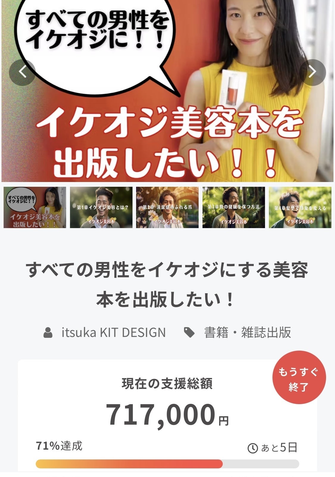 皆さま、こんにちは。itsuka KIT DESIGNの舩木いつかです。前回のクラウドファンディングでのあたたかなご支援に改めて深く感謝いたします。今回、私たちはイケオジ美容本「美投資」の読者様からの多くのご意見を元に、香りのスペシャリスト箕輪三香さんとタッグを組み、「itsuka KIT ヘア&ボディバーム」を開発いたしました!この「itsuka KIT ヘア&ボディバーム」は、今月からクラウドファンディングにて先行販売を開始します。この機会にぜひお手に取ってみてください。詳細はプロジェクトページにてご覧いただけます。また、お気に入り登録もぜひお願い致します。https://camp-fire.jp/projects/view/708021?utm_campaign=cp_po_share_c_msg_mypage_projects_show皆さまの継続的な応援が私たちの活動の励みとなります。今後ともどうぞよろしくお願いいたします。