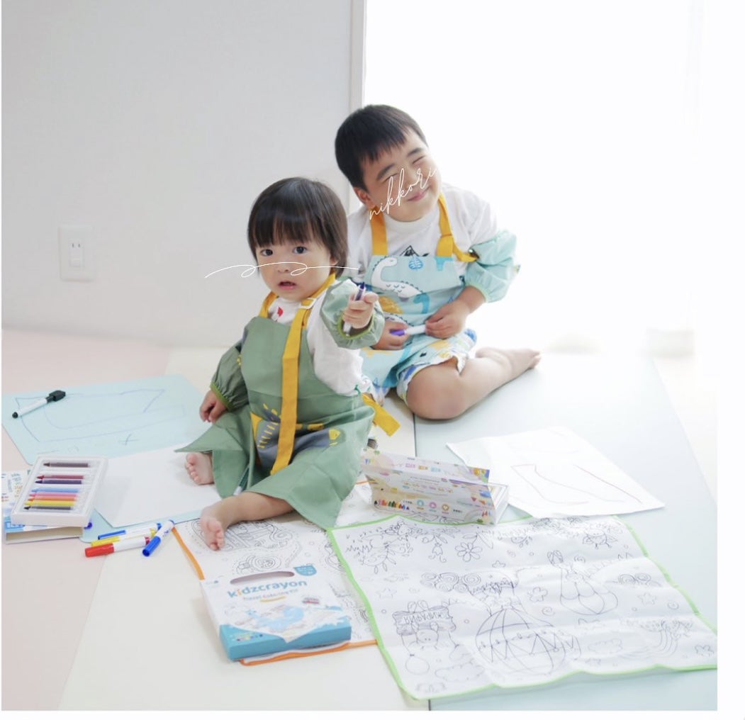 さらに学習も工作も可能なクレヨンや水性ペン、エプロンなどもセットになっています