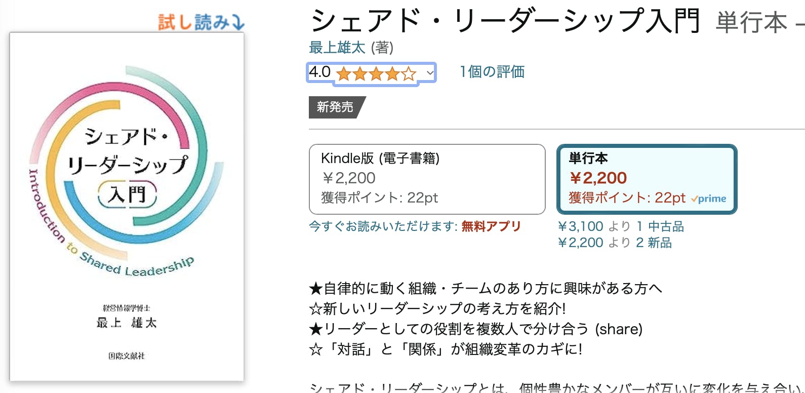 2023/07/30 08:48ご支援いただいた皆様「シェアド・リーダーシップ入門」AmazonのKindle版が昨日公開されました。皆様からいただいた支援金を活用させていただきました。いただいた支援を形にすることができました。本当にありがとうございます。おかげさまで、紙版の売れ行きも好調のようです。本書の普及は始まったばかりですが、今後もご支援・ご声援くださいますようお願い申し上げます。紙版と合わせてKindle版もどうぞよろしくお願いします!Amazonの本紹介ページはこちら もっと見る