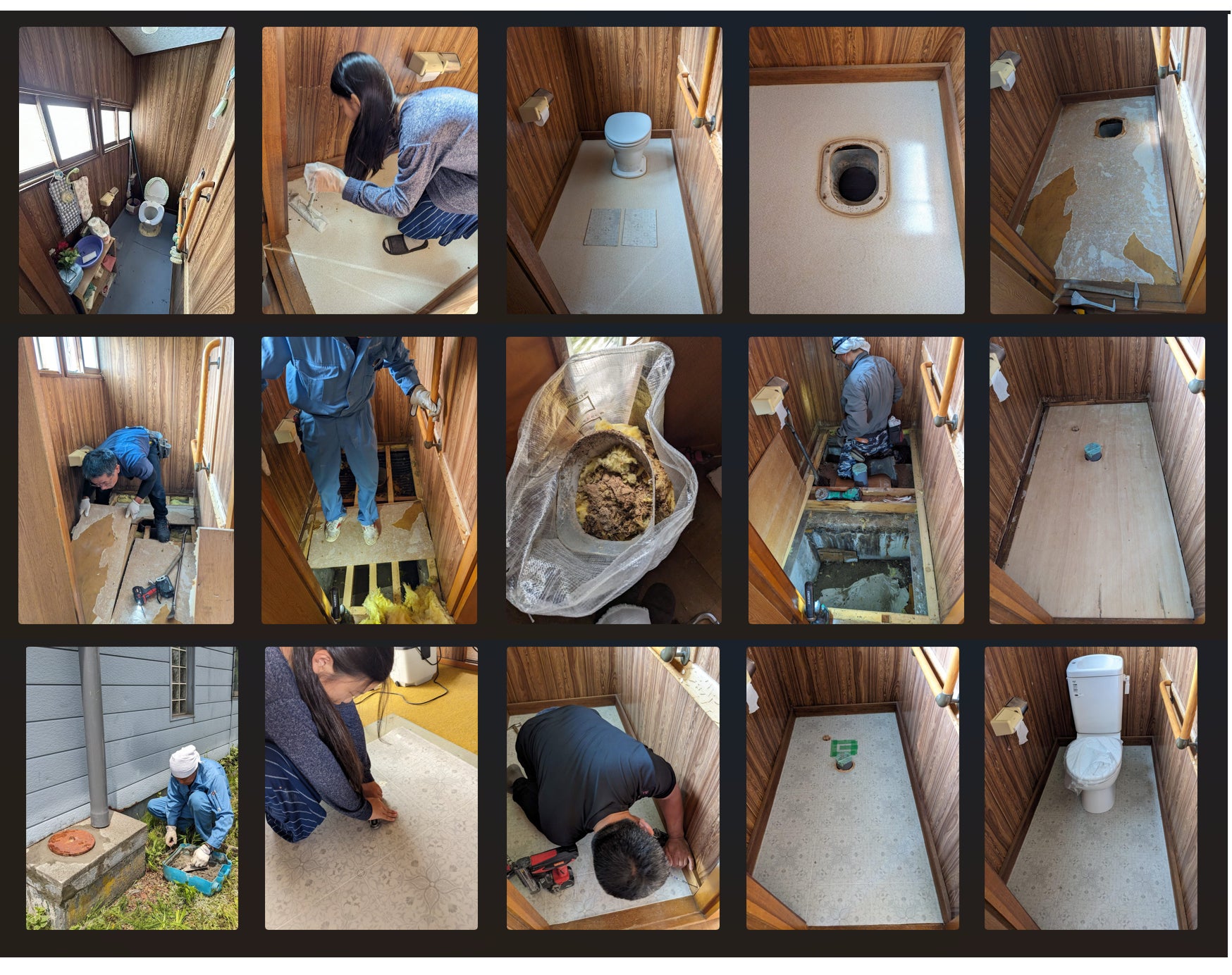 簡易水洗にはなりましたが、定期的な汲み取り作業が必要なので、近いうちに一度汲み取ってもらう予定です。なにせ15人超えのトイレ利用となるので、一週間が限度でしょうか。