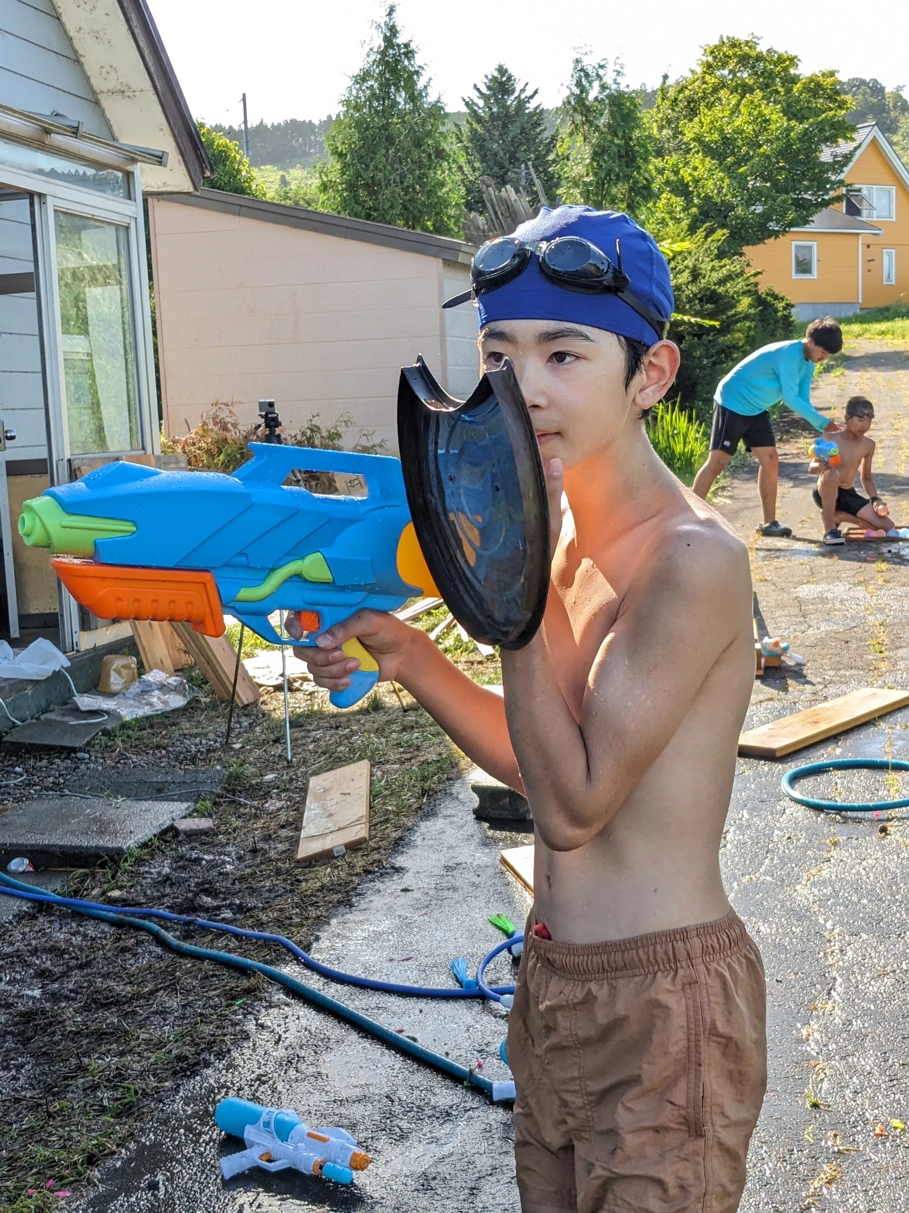 昼間の暑さは特に酷いので、作業は朝と夕方に進めることにして、昼間はたいてい水遊びやお昼寝をして過ごしています。