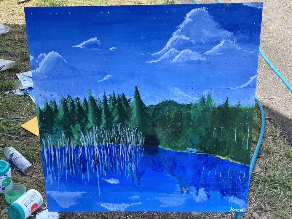 「美瑛の青い池」をイメージに、素敵な作品に仕上がりました。壁の装飾・収納に活躍してくれそうです。
