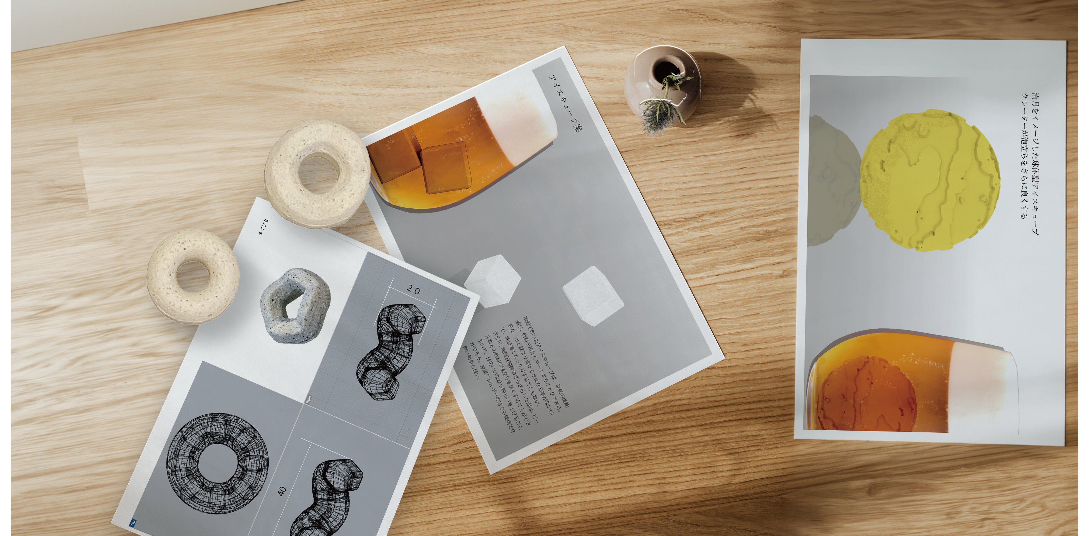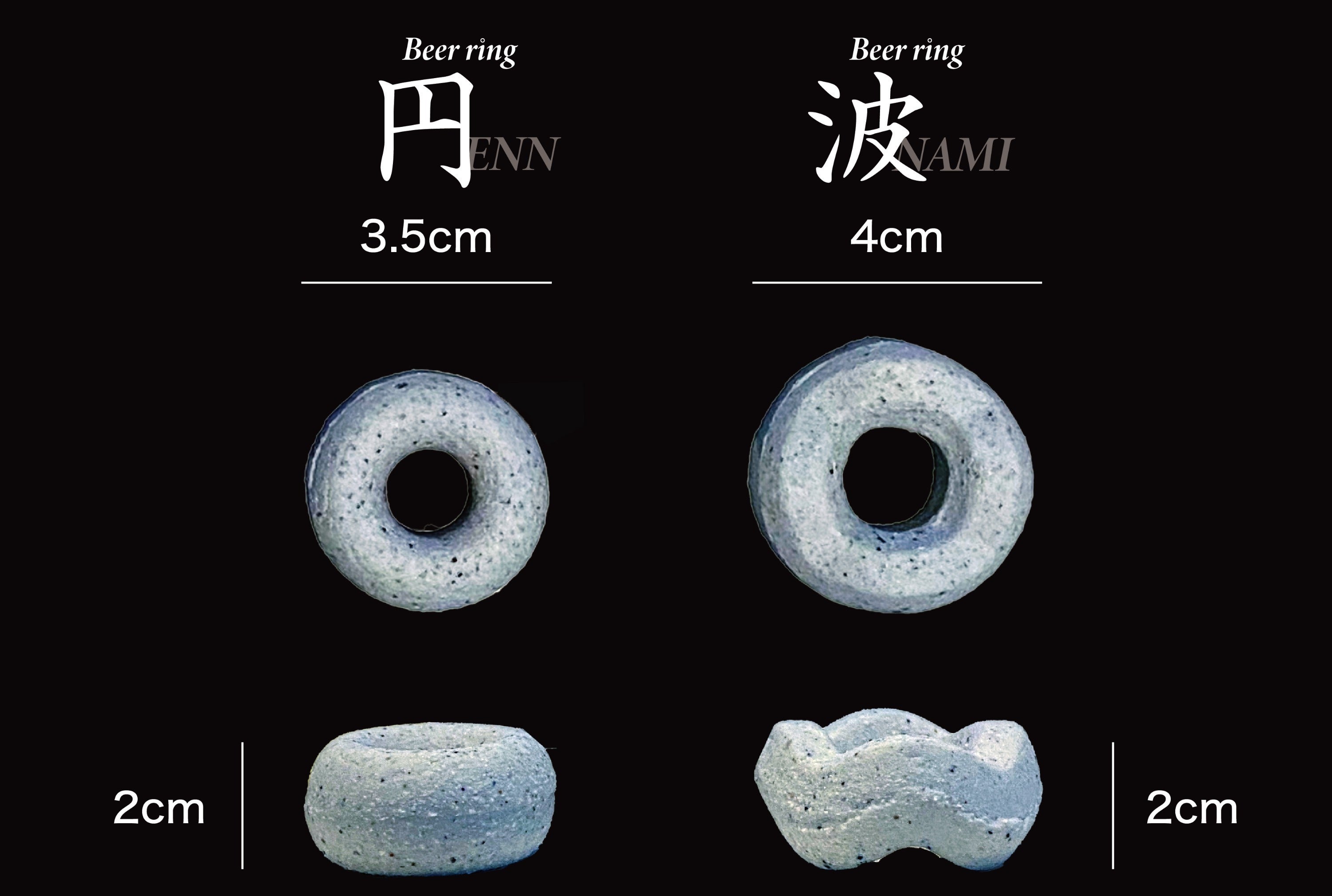 地場産業の良い文化をもっと残していきたい、陶磁器の産地を盛り上げたいと考えた時に、「今まで見たことのない、陶器の新しい魅力の伝え方はなんだろう?」「器などではない、新しい物を考えてみよう。」と様々な商品の企画を考える中、陶器ならではのザラザラした触感から、ビールカップのザラザラが洗いにくいという悩みがあることを知りました。そこでザラザラした部分だけ取り出せればいいのでは?と思いついてから、様々な形を検討しました。ただの粘土を丸めた形から、氷のようなキューブ。形が良くても味が良くないと何度も作り直し、リングにたどり着いた後も土を研究したりと、構想から完成まで2年ほどかかり、ようやく完成したのがビアリングなのです。