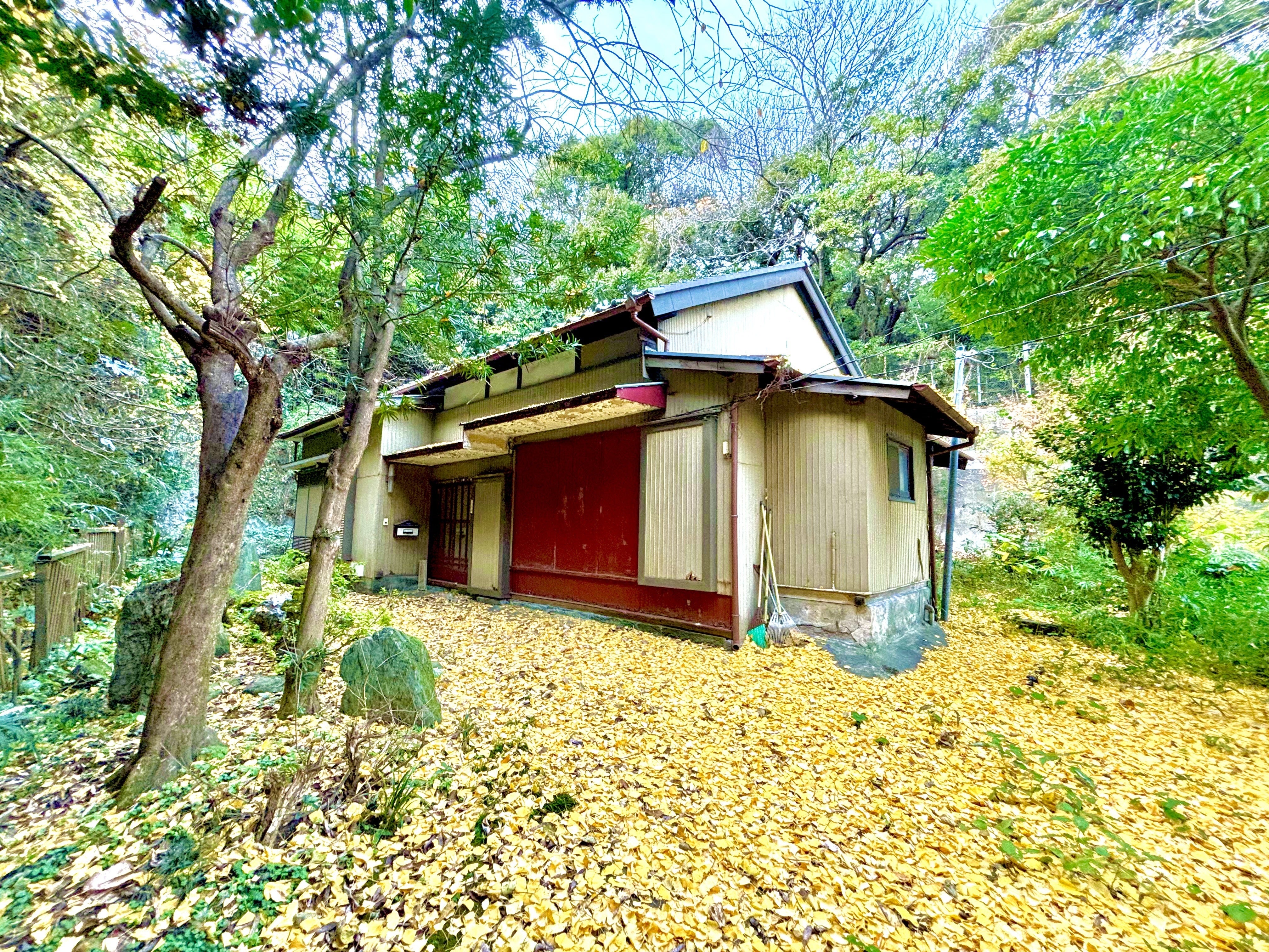 レセプション棟から徒歩8分のところに建つ築約80年の日本家屋です。最寄駅からも徒歩15分と気軽に訪れられる立地ですが、外界と隔離された木々に囲われるプライベート空間になっています。まるで森の中のぽつんと一軒家のような滞在がお楽しみいただけます。近隣にはスーパーやドラッグストアなどの必需品が揃うお店、歴史遺産や神社仏閣などの観光スポットも点在しています。仕事帰りに手ぶらでも非日常を体験できるそんな宿になります。
