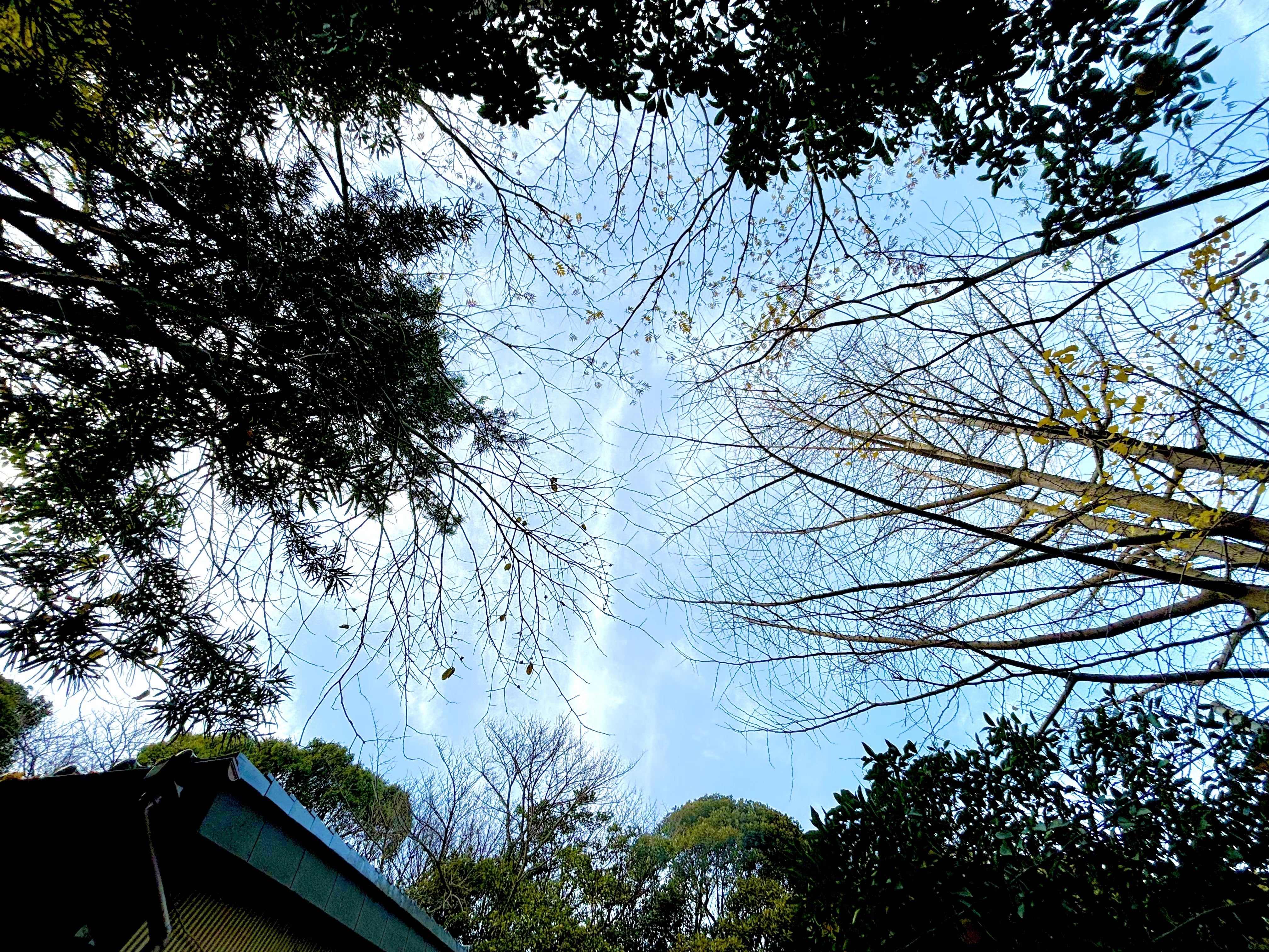 木々に囲まれた独立空間、夜には星空が広がります。