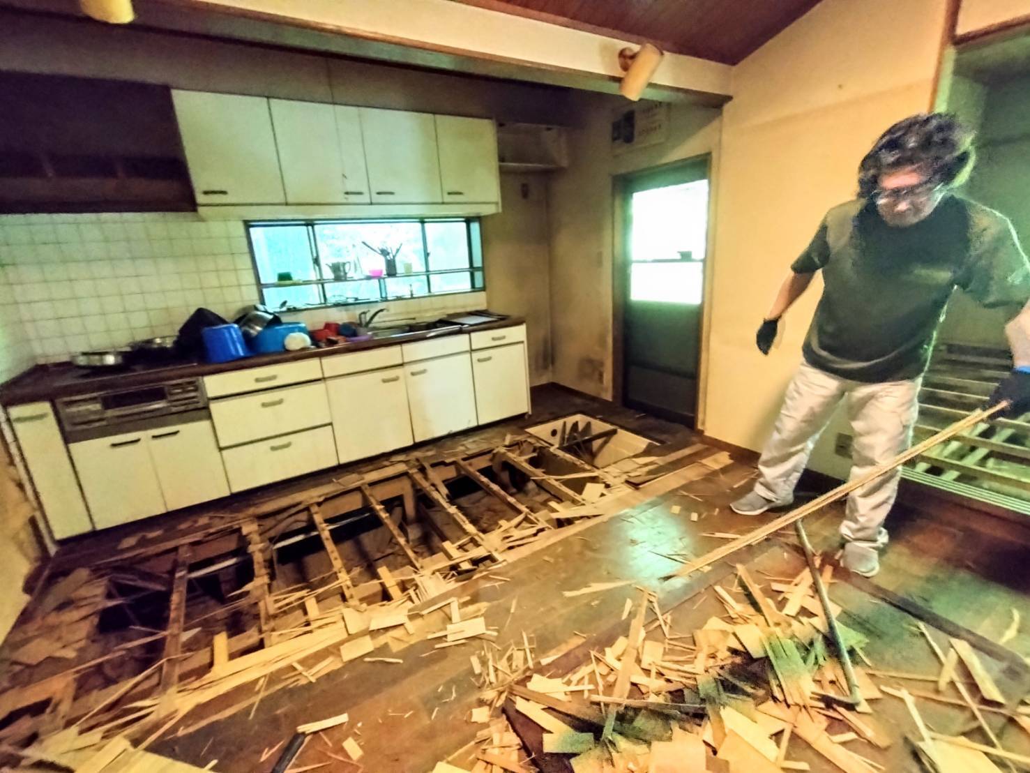 空き家改修をお手伝いしたときの麦島。床壊してます。