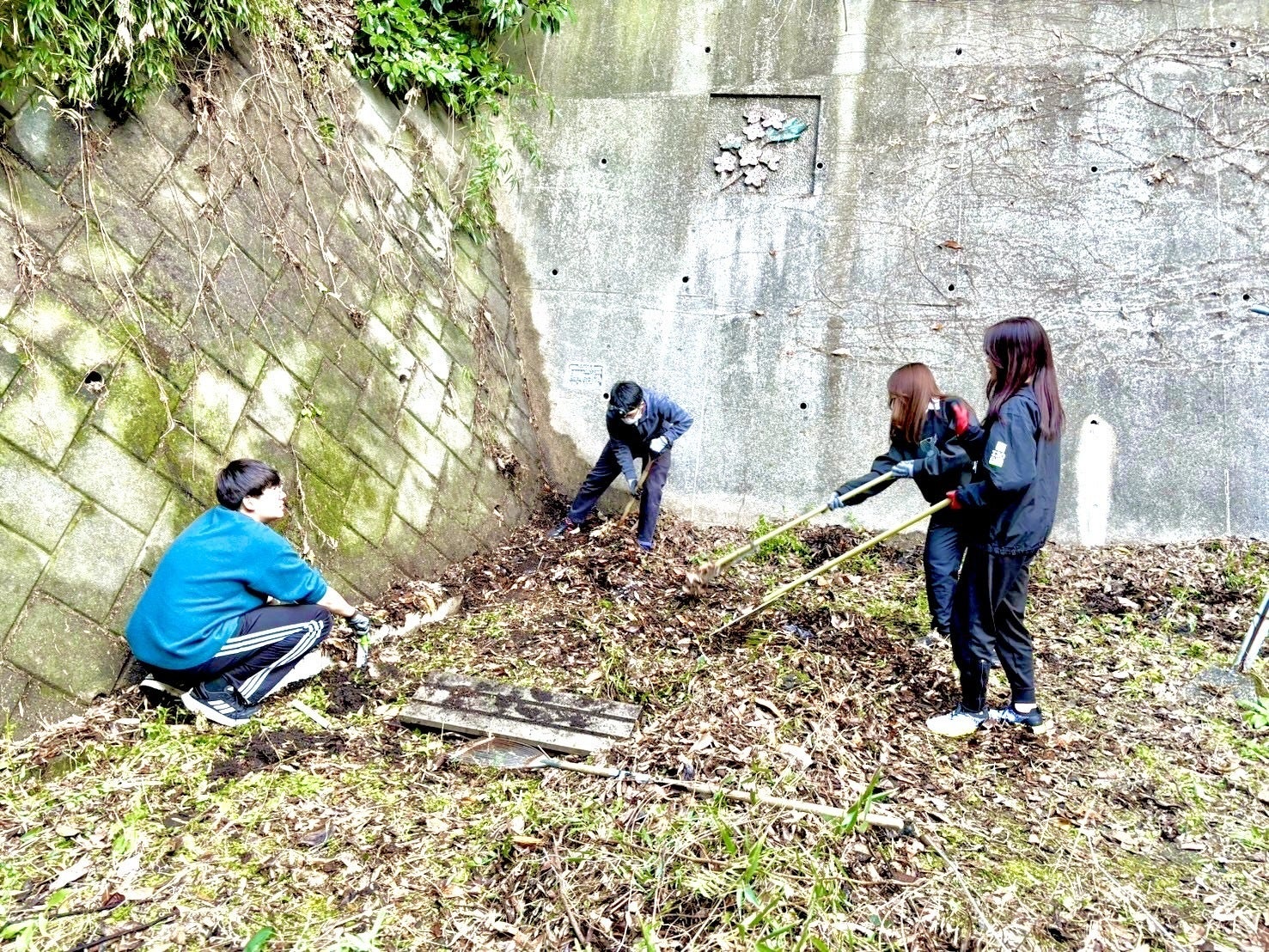 この日は連日の雨が上がった後のため庭はどろどろという状態でしたが、慣れない仕事を一生懸命行いました。