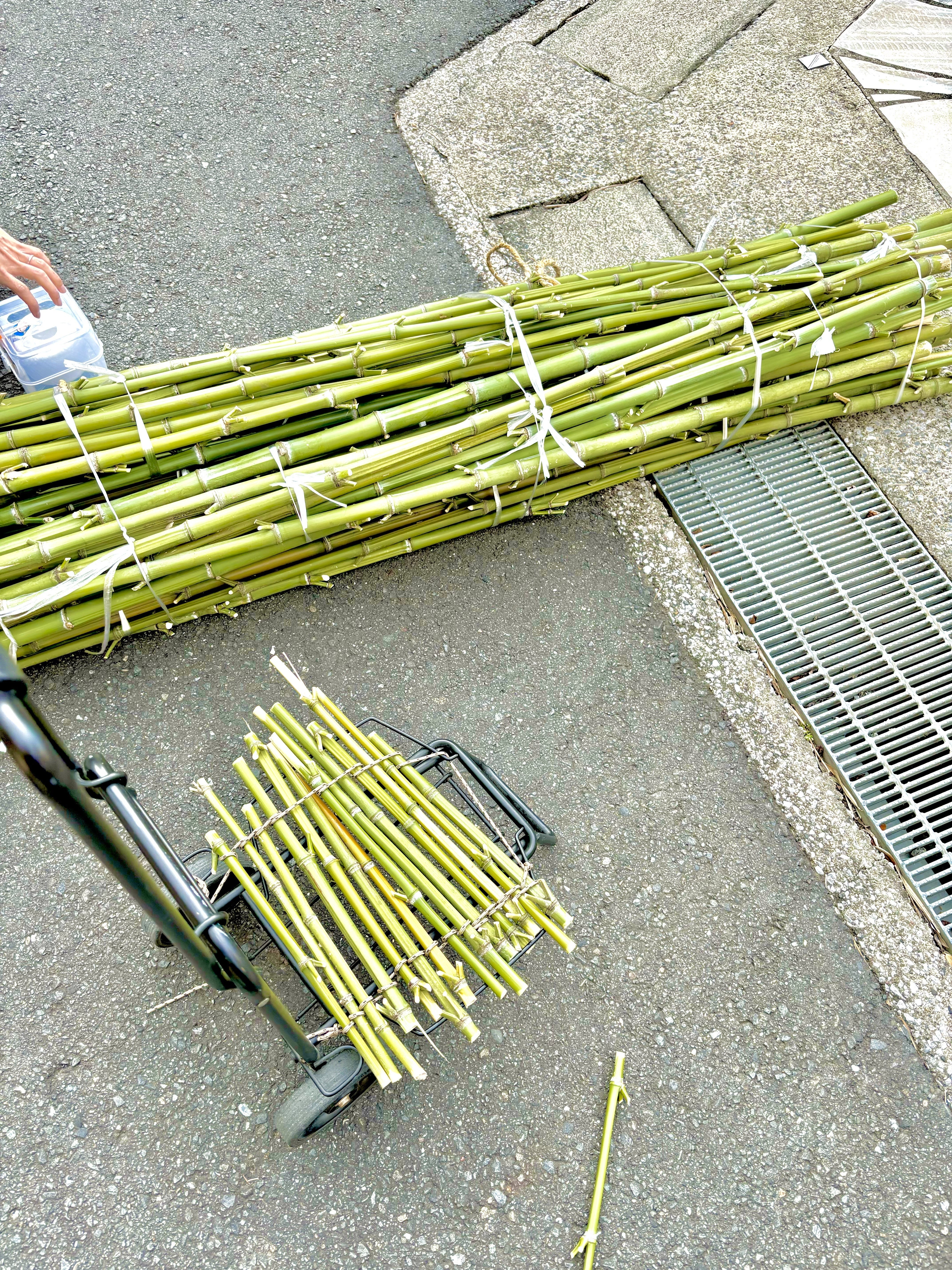2m以上そして20キロ以上ある竹を、写真の小さなカートで運ぶのはなかなか大変でした。