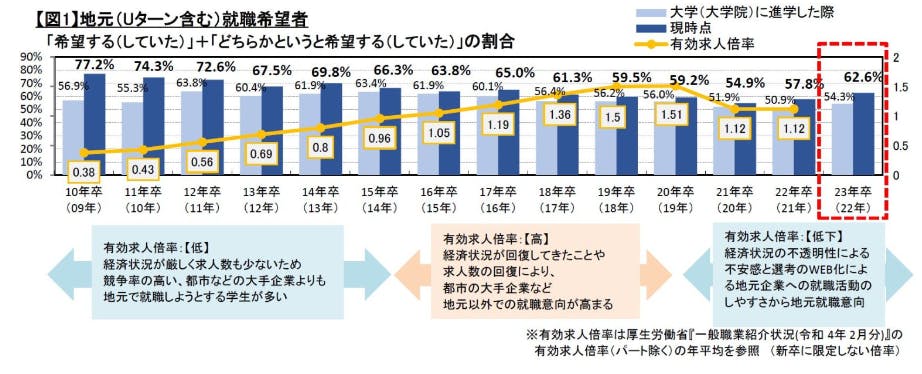 もう一つは「地域の若者を育てる教育」です。どんなにすばらしいことでも続いていかなくては意味がありません。その中で最も大切なことが、地域の若者の存在です。うれしいことに現在、10年以上減少傾向であった地元就職希望が上昇に転じ、地元就職を希望する学生が62.6%も存在しています。(2023年マイナビ調べ)しかし、地元に産業が無く、若者に地元で生きる力が無ければそれも実現することがありません。そこで、今回のプログラムを通じて新たな地元の産業の創生に一から携わることにより、地元での可能性や実際に運営するノウハウを直に感じてもらい、地元愛をさらに育み、将来のキャリアプランの創造と産業の継続を実現する教育プログラムを提供しします。