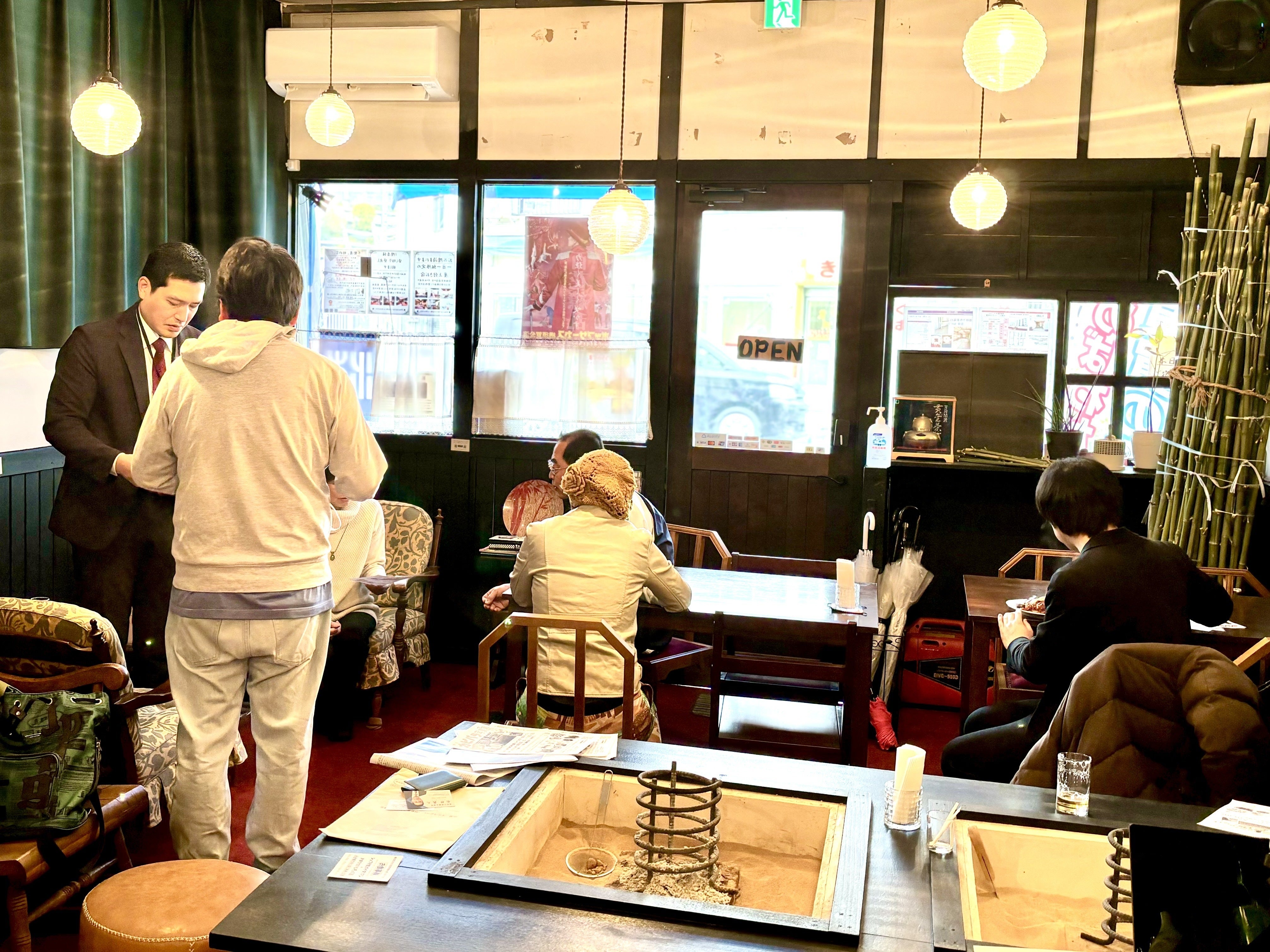 現在の店舗も自身でDIY。奥のカウンター、手前の囲炉裏テーブルも手作りです。