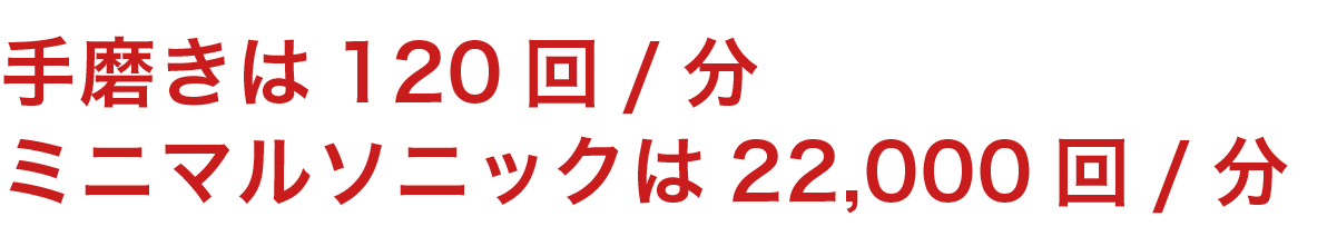 手磨きは1分間で120回磨けるのに対して、ミニマルソニックは1分間で22,000回磨けます。これだけパワフルな力を秘めたホワイトニングモードを搭載しています!