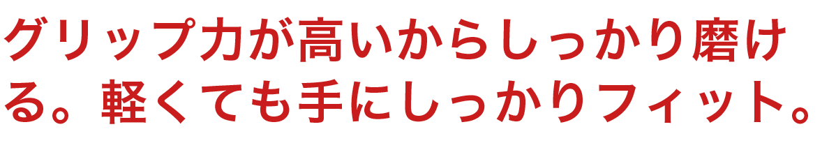 ミニマルソニックは軽くて小さいながらもパワフルです。その特徴を支えるのが粒子グリップです。手にしっかりフィットして高いグリップ力で磨くことができるのです。