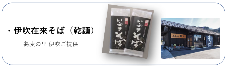 リターン品には純米吟醸「花乃伊吹」のほかに地元特産品の「鮒ずし」、「伊吹在来そば」、「伊吹ハム」のセットのご用意いたしました。