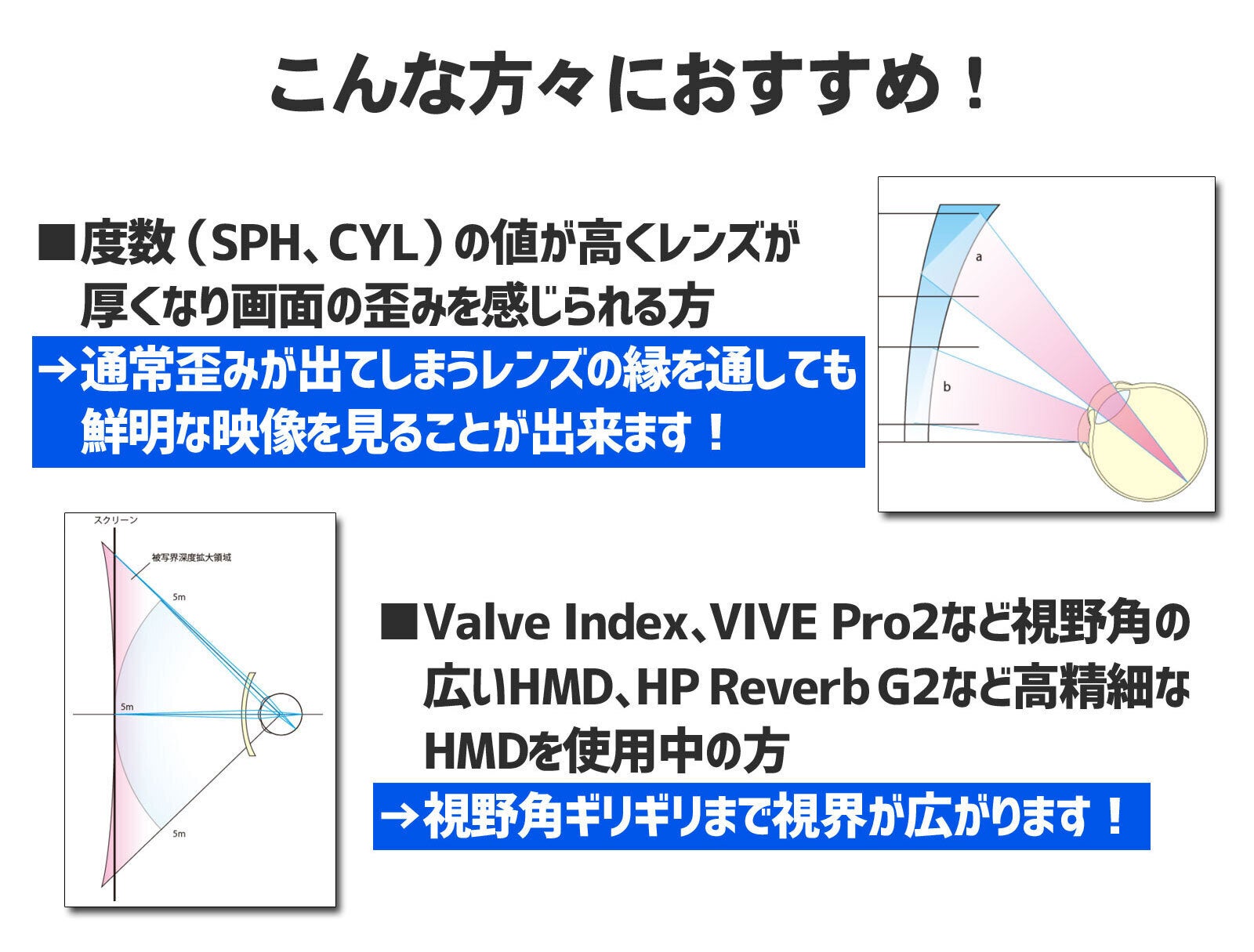 Quest Pro、PSVR2など、映像が高精細な新型ヘッドマウントディスプレイでは十二分に効果を発揮します。