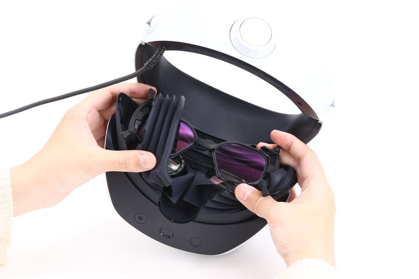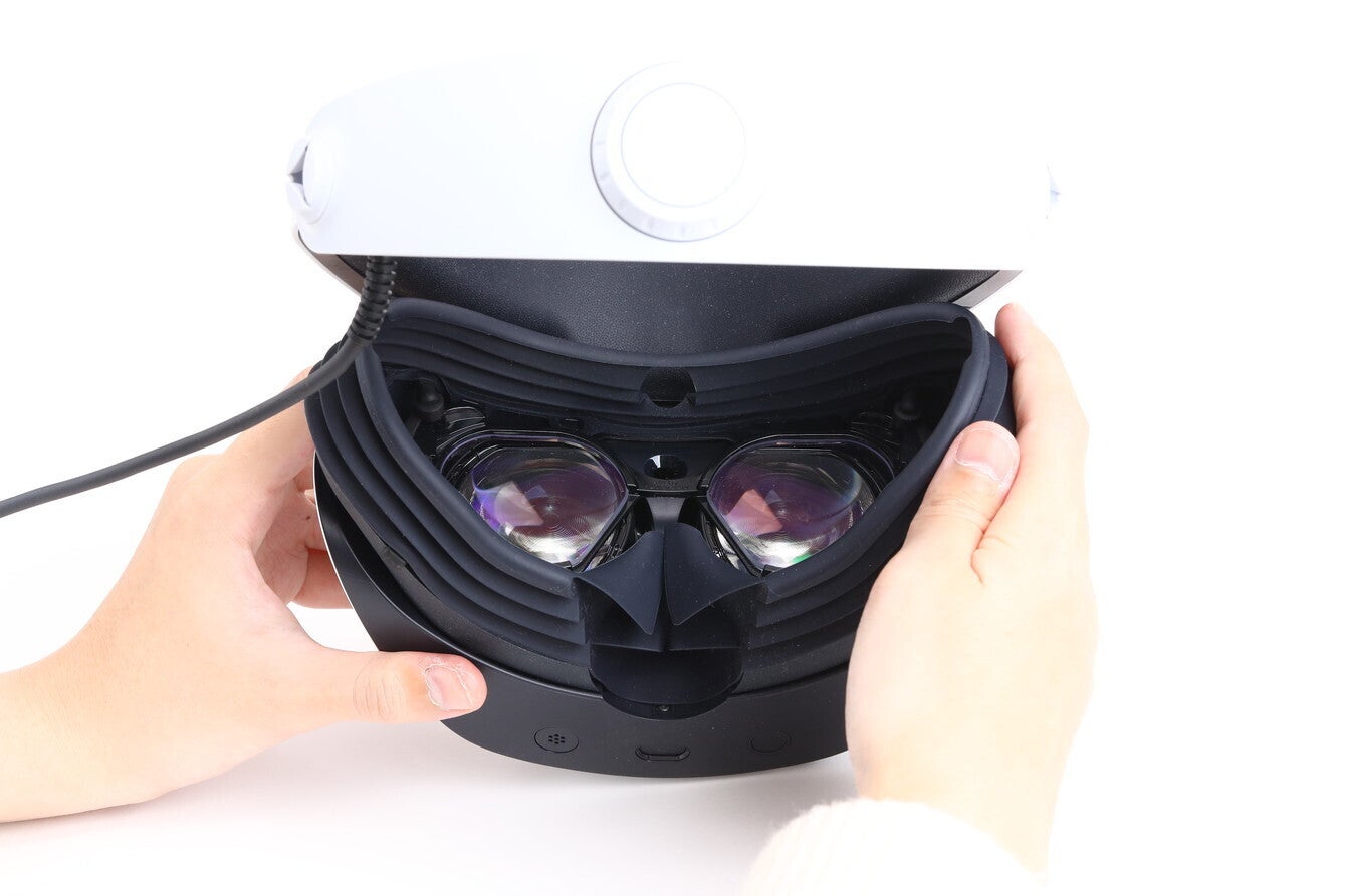 PSVR2対応時は、こちらのように左右に新規アタッチメントを取り付ける形になります。