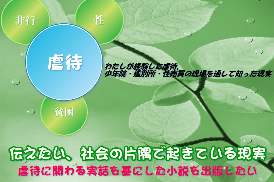 虐待をテーマにした実話を基に、そこから生じる「貧困」、「性」、「非行」のそれぞれの問題を題材とした3つの短編小説を書きます。