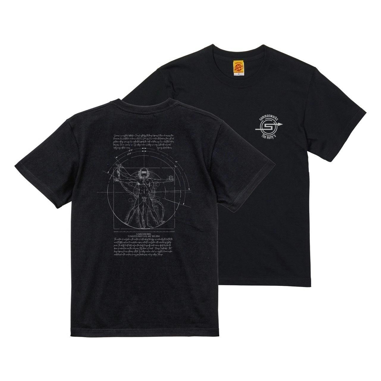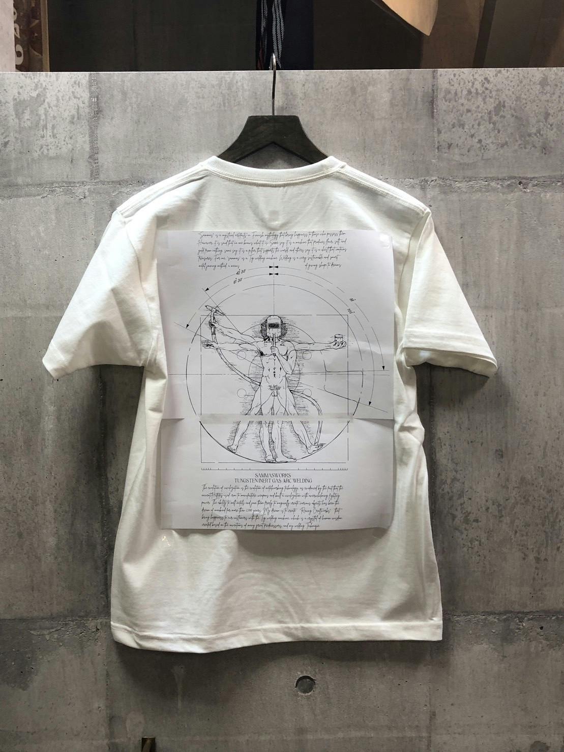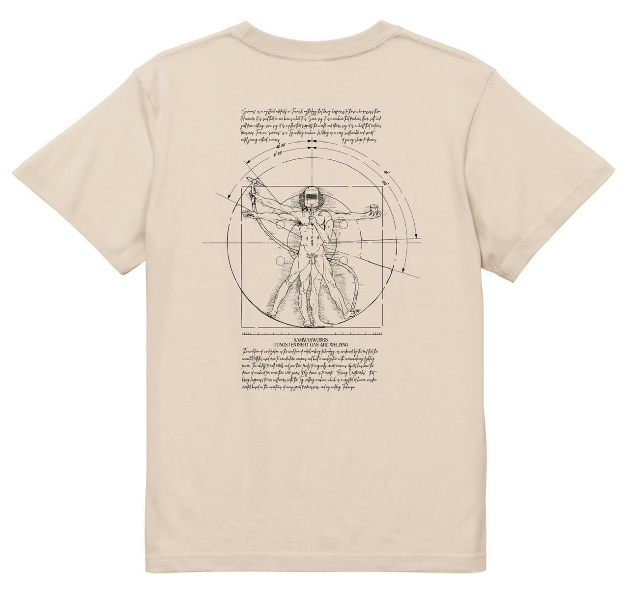 背中にレオナルド・ダ・ヴィンチの"ウィトルウィウス的人体図"をベースモチーフとして、溶接やロータリーディスクバルブなどの小ネタを盛り込んだHoity's、そしてsammasworksらしいクールなデザインを大きくプリント致しました。