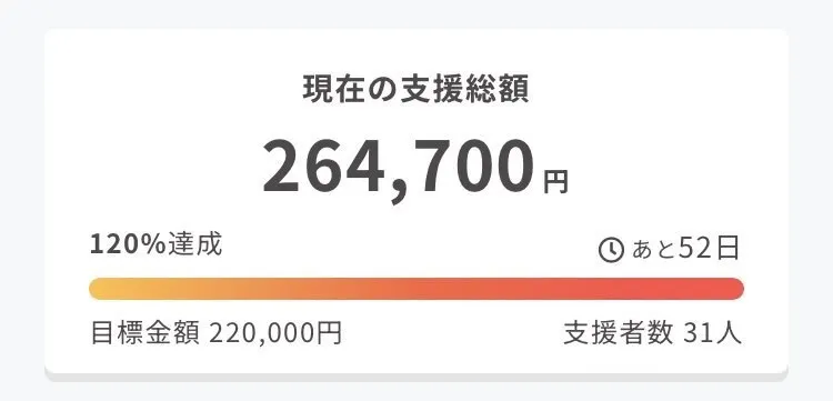 公開してそのまま気絶したように眠って、ギリギリで会社に出勤して昼休みにCAMPFIRE覗いたらもう220,000円達成してて本当にビックリでした。