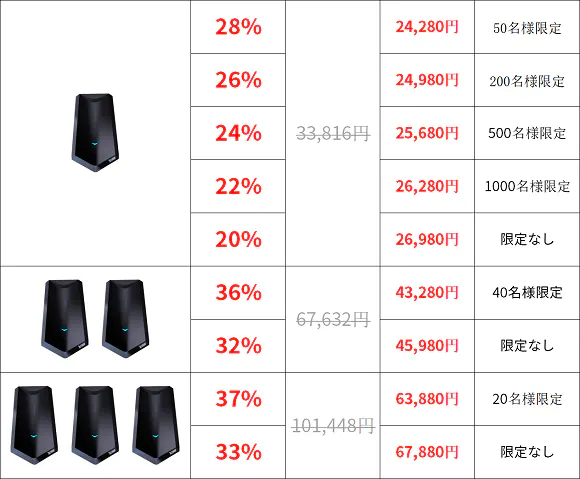 ※本プロジェクトを通して想定を上回る皆様からご支援を頂き、現在進めている環境から量産体制を更に整えることができた場合、正規販売価格が販売予定価格より下がる可能性もございます。