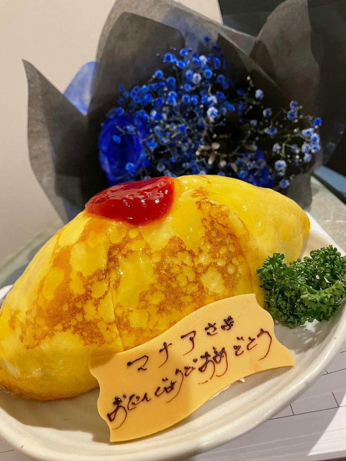ケーキと花束を生誕祭中にマナア様へお渡しします。