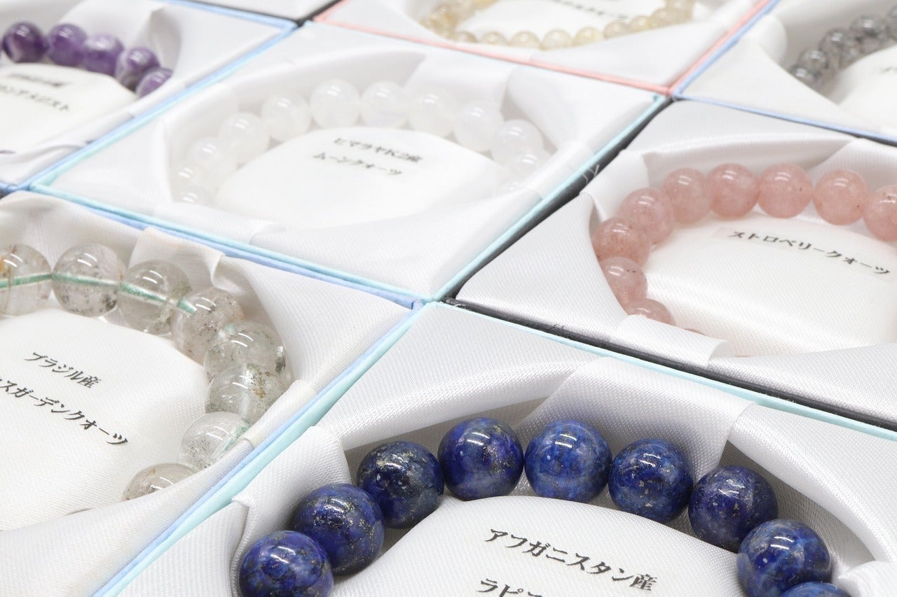 ジュエリー・かわさきが扱う天然石の中でも良質なものだけを選び、制作させていただいたブレスレットのみをご提供させていただきます。珠の大きさは約8mm~約14mm程度が主になり、手首サイズは約15~16cm程度で制作しております。