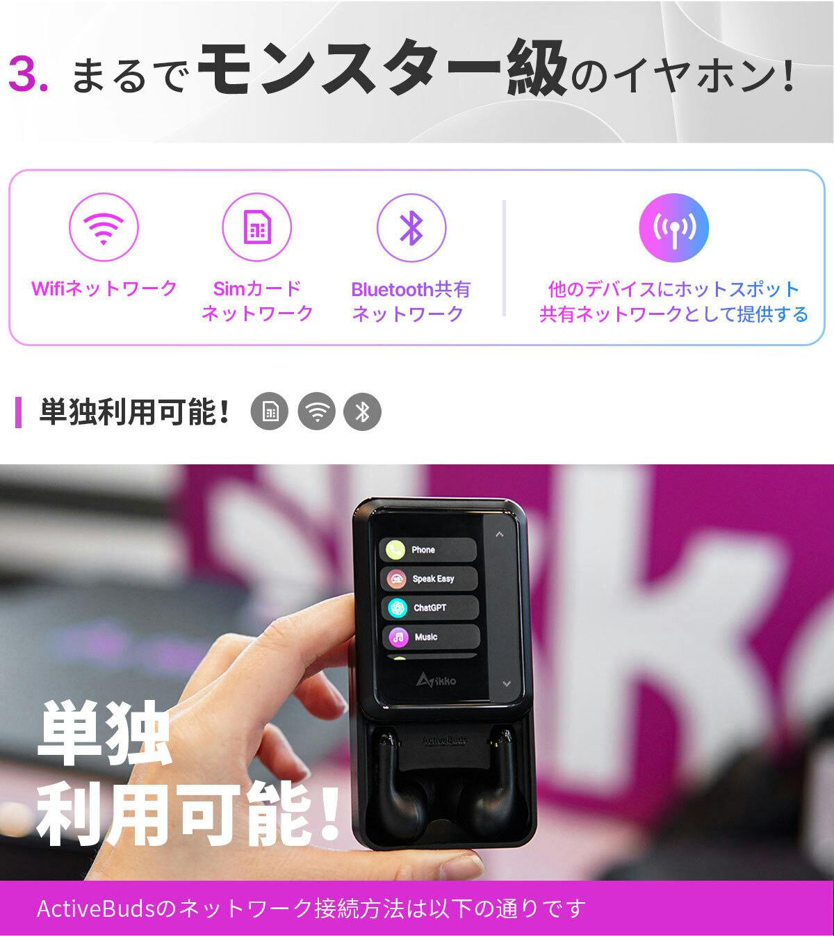 A: ①. Wi-Fi接続:ActiveBudsはWi-Fiネットワークに接続することができます。