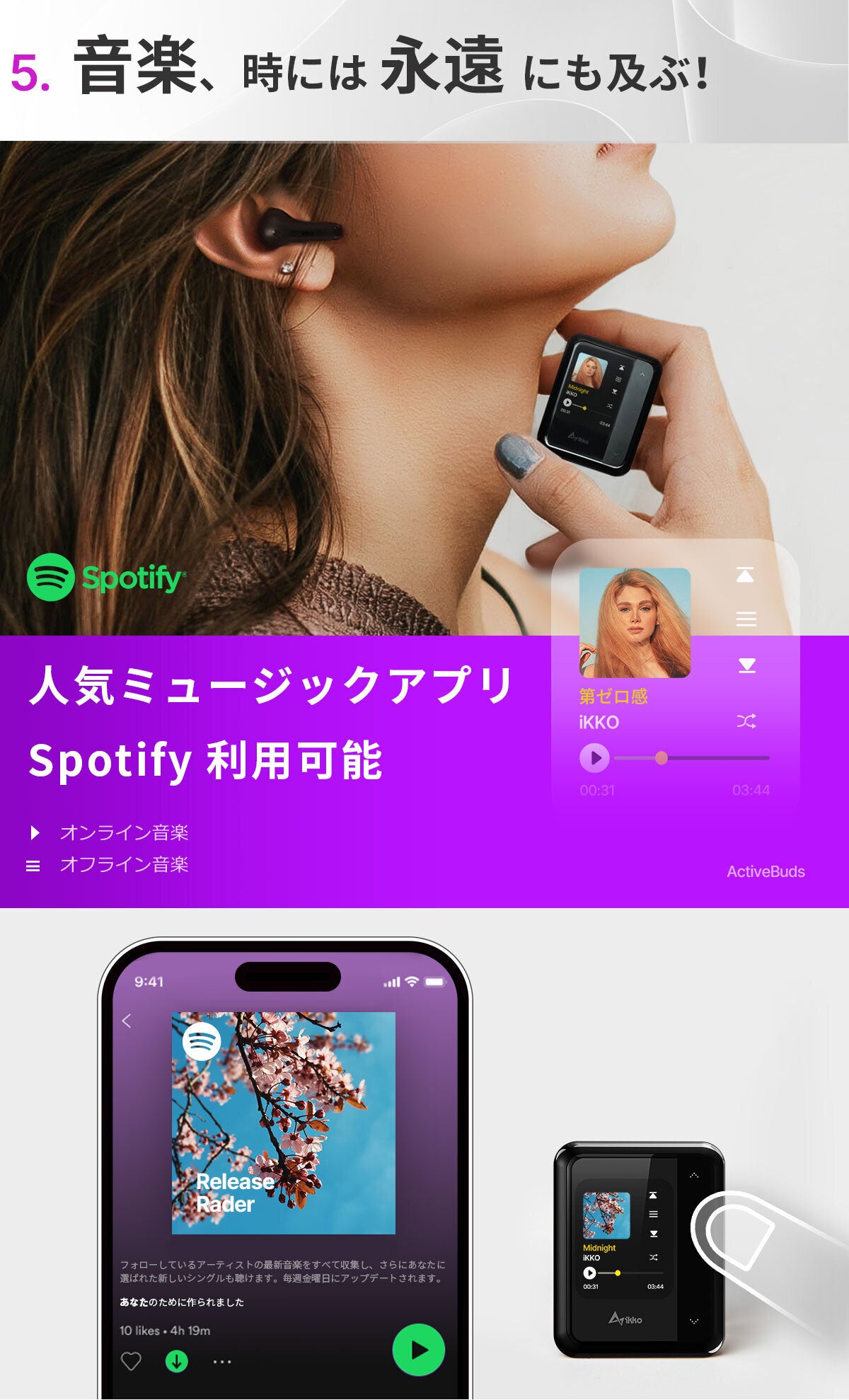 ActiveBudsとともに、心躍る音楽の旅に出発だ!Activebudsであれば、常にスマホが要らなく、より便利な移動が可能!