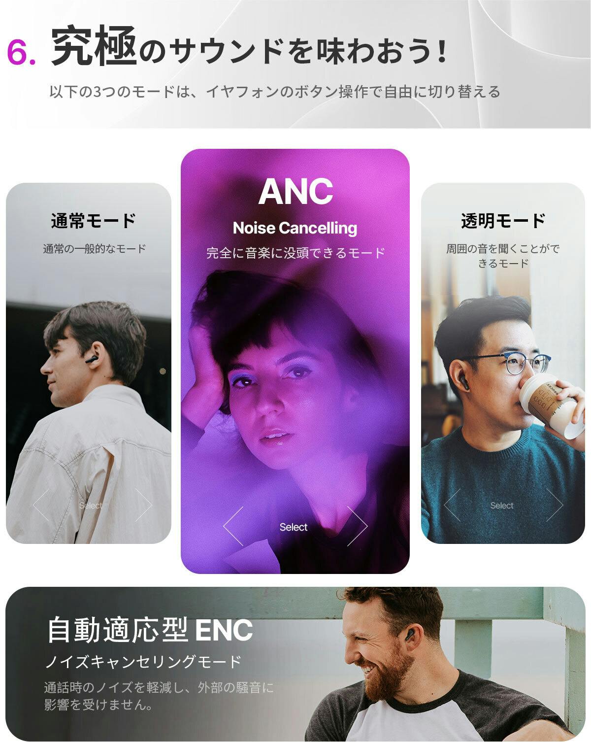 優れたノイズキャンセレーション - ANCとENCによる優れたノイズ制御を体験してください。特定の環境では最大45dBのノイズ低減効果を提供します。