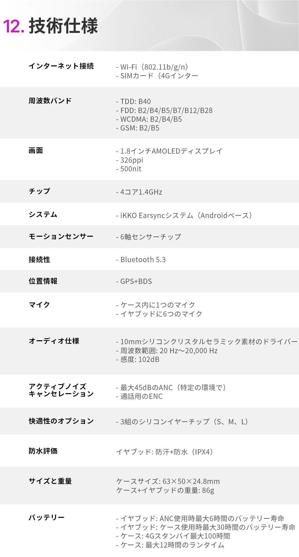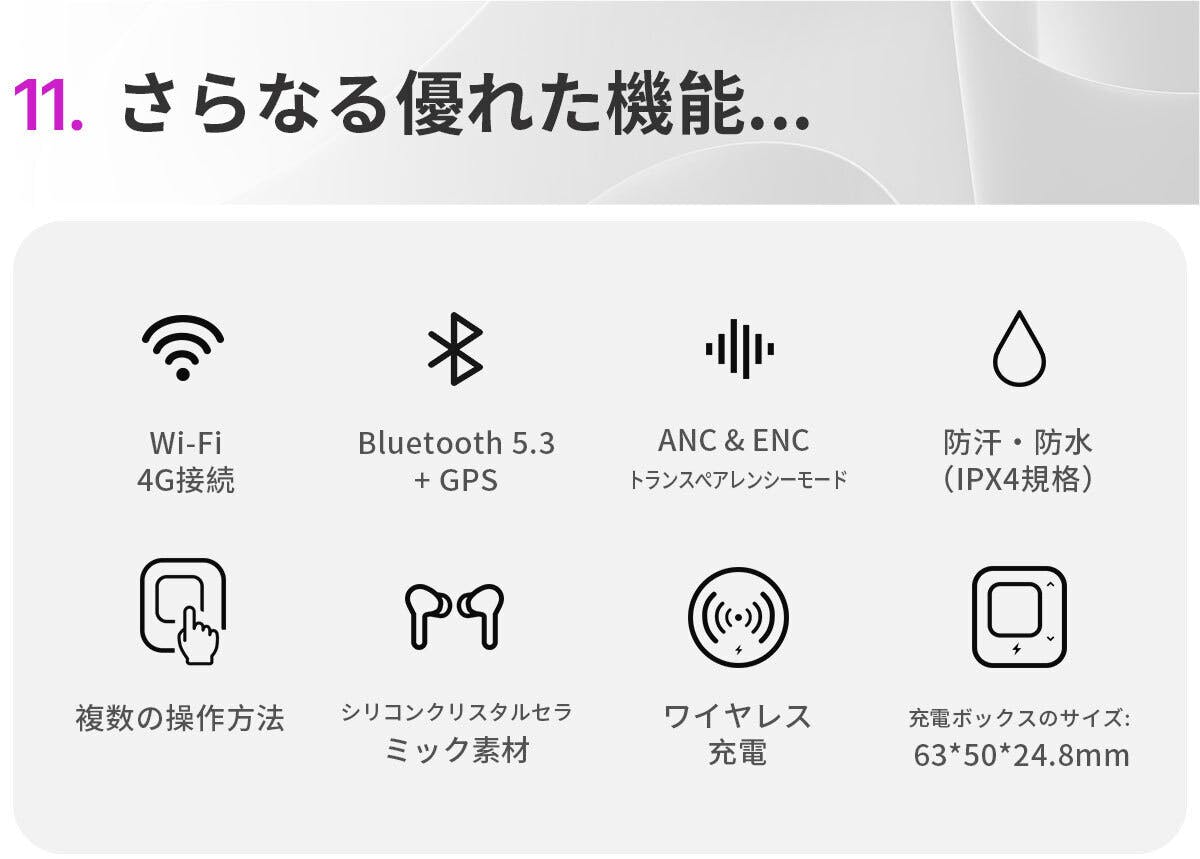 スムーズな接続性 - ActiveBudsは、Wi-Fi、4Gインターネット(SIMカードサポート)、Bluetooth 5.3、およびGPSを提供し、シームレスな接続と位置追跡を実現します。