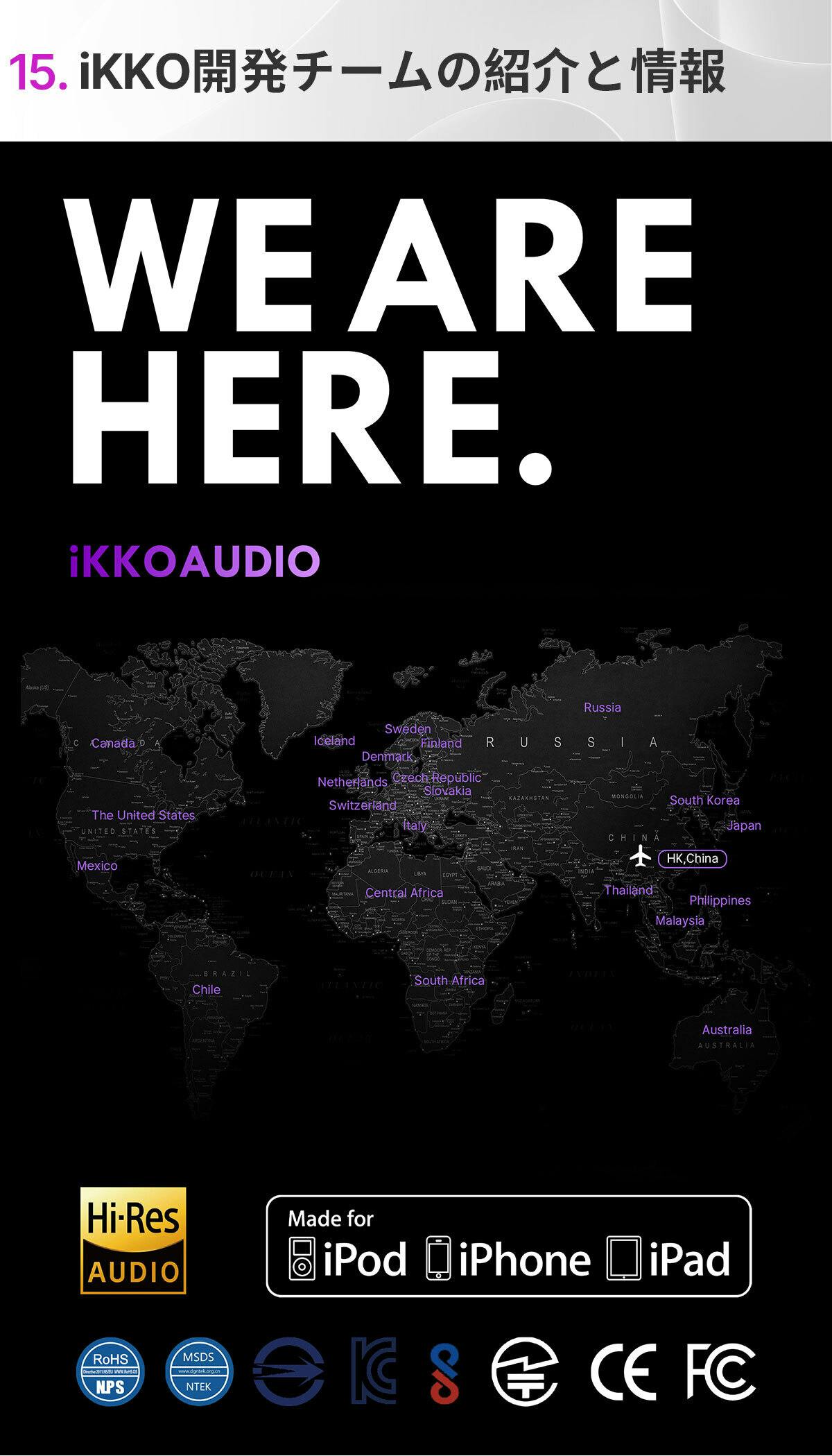 iKKOは、洗練された外観デザインと卓越したリスニング体験を統合した高品質のオーディオ製品を生み出すことに専念しているブランドです。iKKOは、5年連続VPG賞受賞、アップル社のMFI認定を受け、常に人々の心を和ませる最高の音を開発、提供しています。