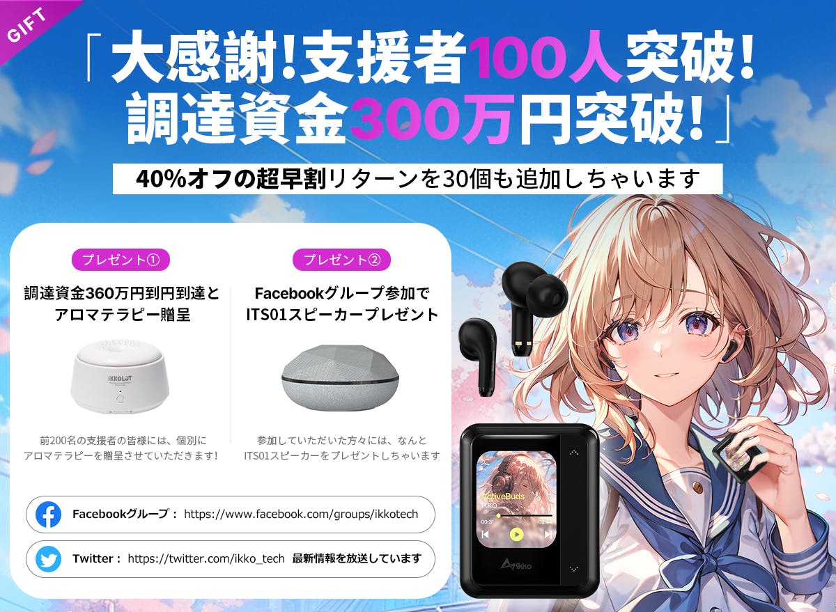 皆様の熱いご支援のおかげで、わずか1日で目標達成!心から感謝申し上げます。Facebookグループ参加で、ITS01スピーカーをプレゼント!
