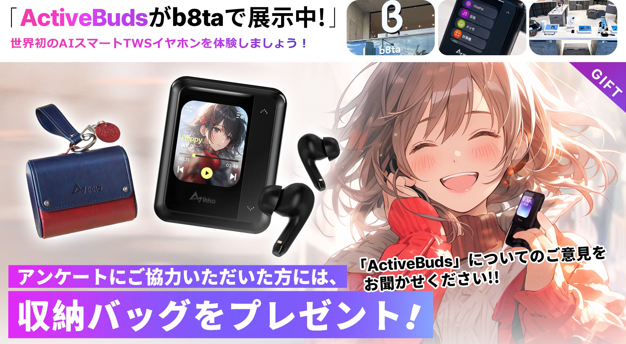 みなさん、ActiveBudsがb8taにて展示中です!世界初のAIスマートTWSイヤホンの魅力を思う存分に体験してください!驚きと感動が待っています!