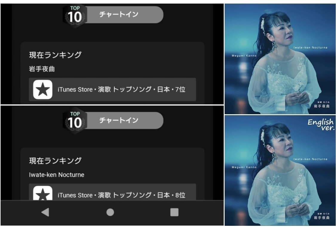「岩手夜曲」配信、2023.11.17 iTunes store 日本・演歌トップソング7位、英語バージョン8位チャートイン!!