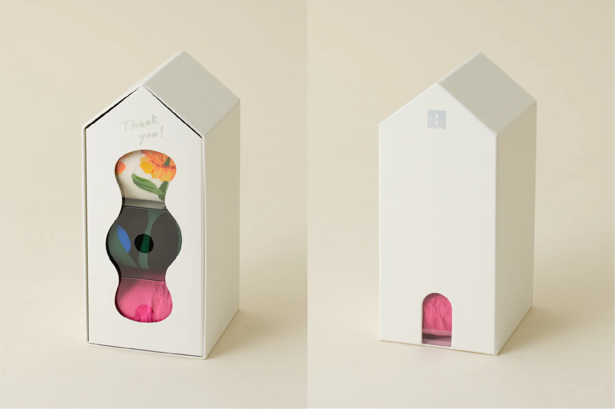 「hibiの贈り物」は、贈る人も、贈られる人も嬉しい靴下ギフト。選んだ3足の靴下が、家型のかわいいギフトボックスに入って届きます。