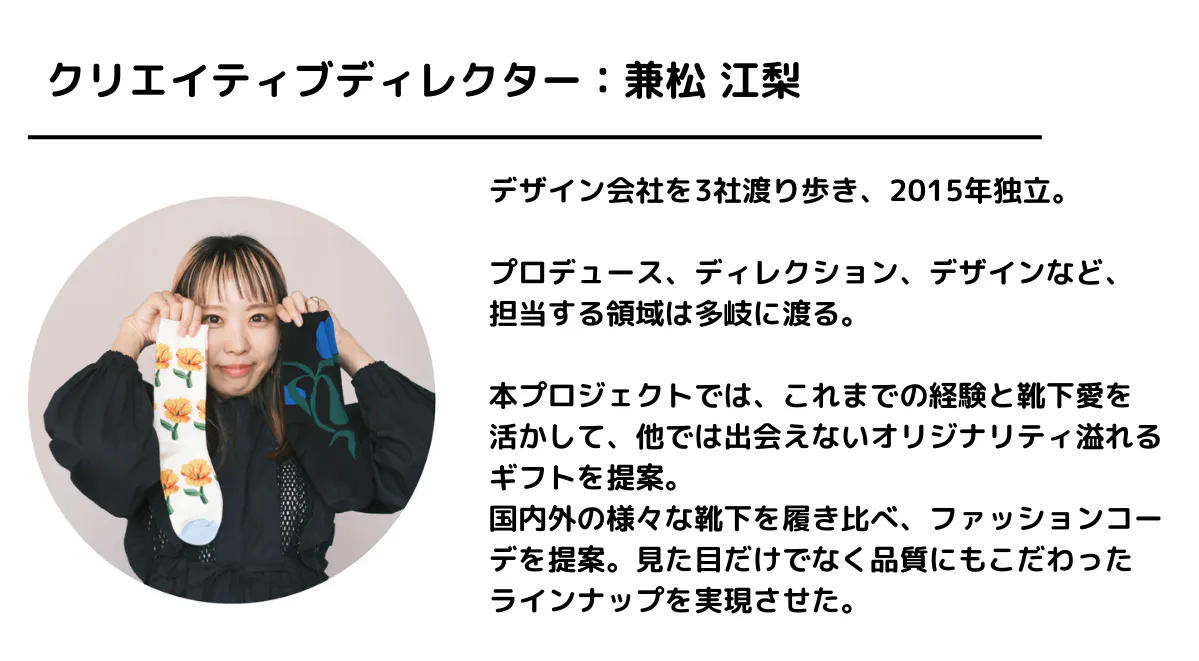 そこから浮かんだのが、大切な人を想って選ぶギフトとしての靴下。ギフトにするならこんな品揃えでこんなパッケージで……と、どんどんと構想が膨らんでいきました。