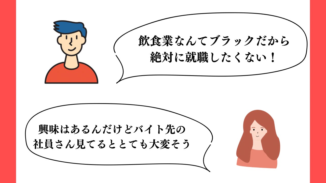 それは飲食店が学生アルバイトさんや主婦などのパートさんにとって簡単に働くことができる身近な職業でありそんな中で『飲食業はブラックだ』『自分の幸せを犠牲にしないといけない』『飲食店で正社員として働くのは過酷だ』こんな風に感じさせてしまっているお店がほとんどだからだと私は考えています。